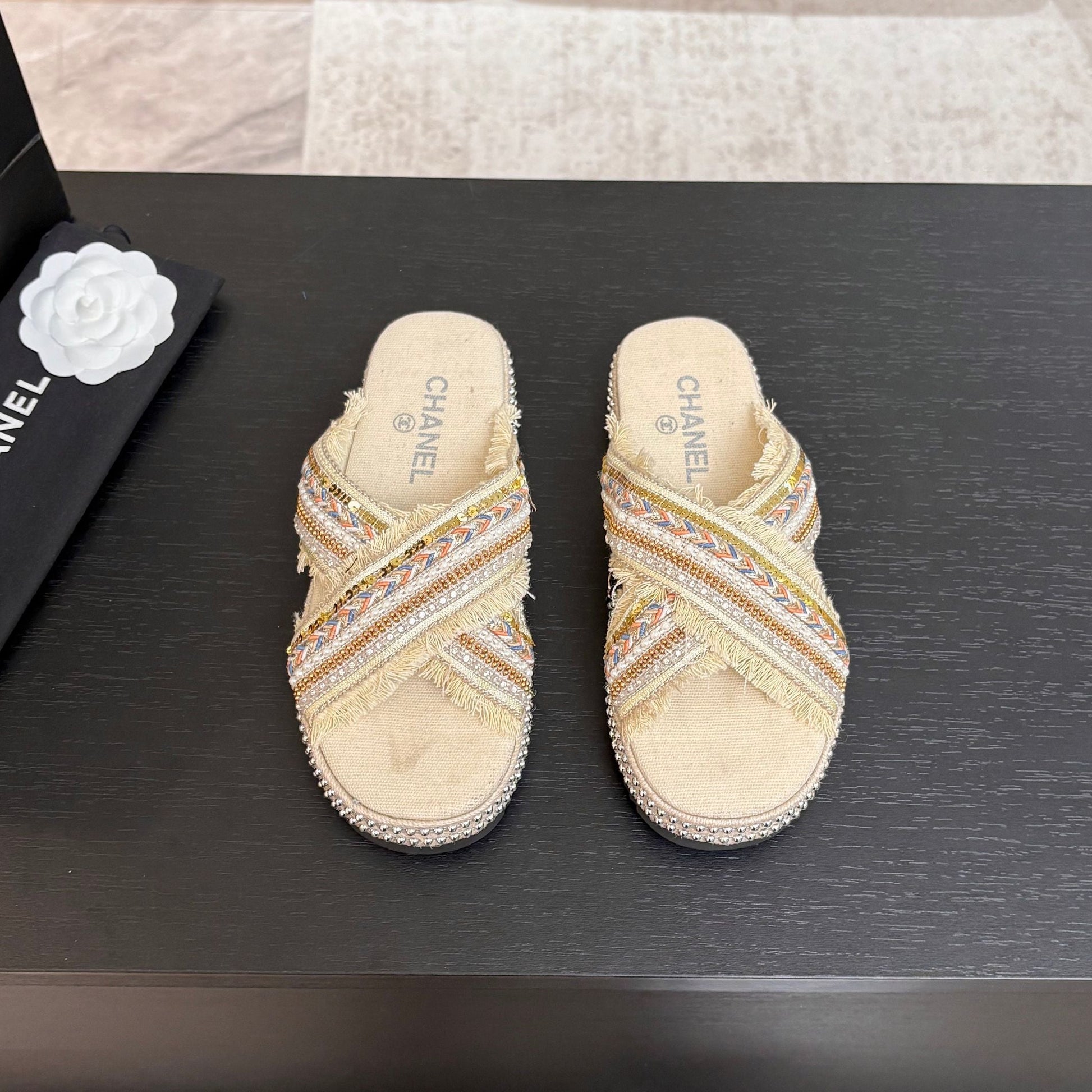 CC 25C Thick-Soled Slipper In Black Denim Navajo White Fabric 213233