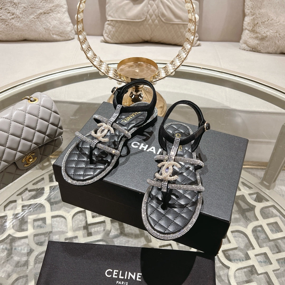 CC 25C Thong Sandal Black with White Sheepskin 213340