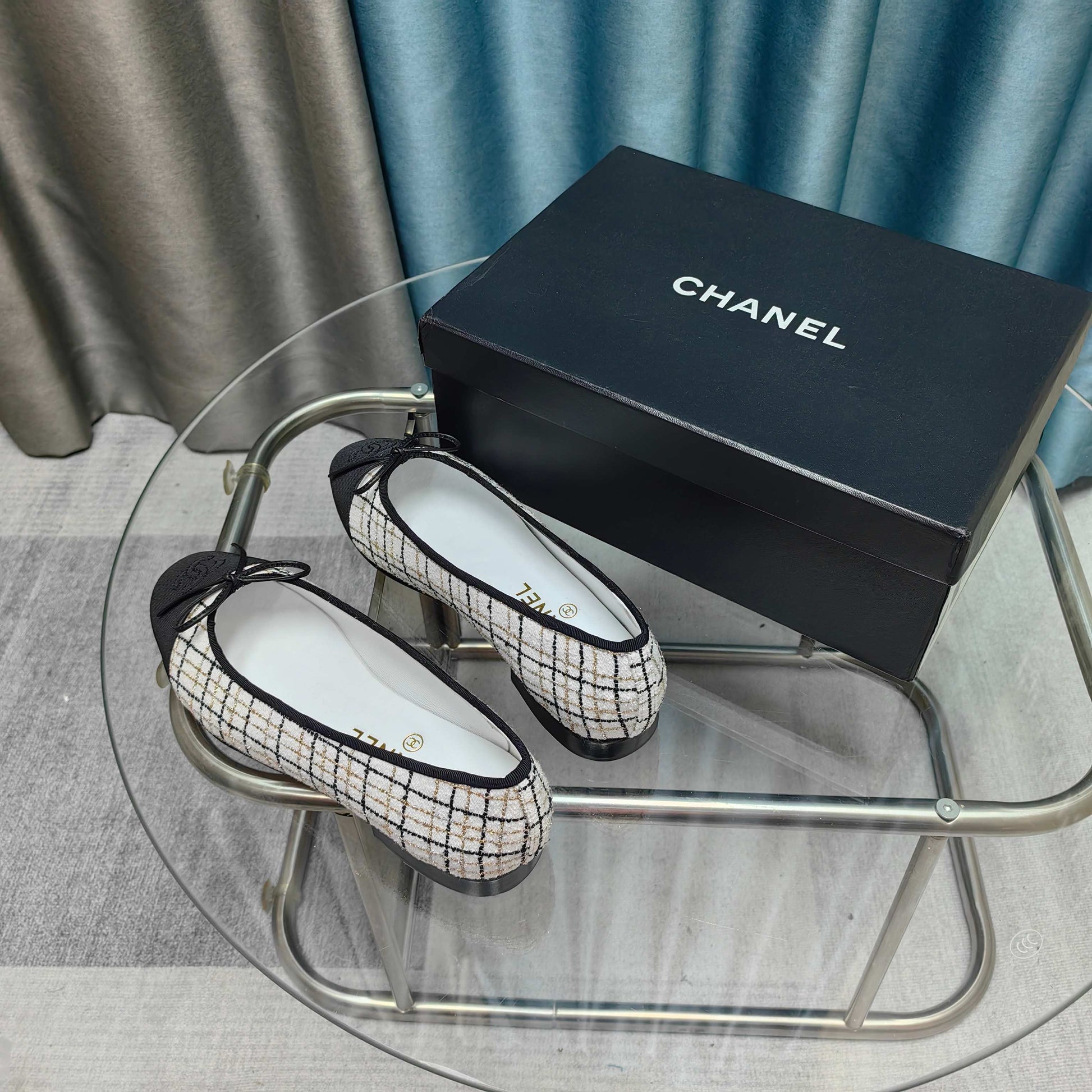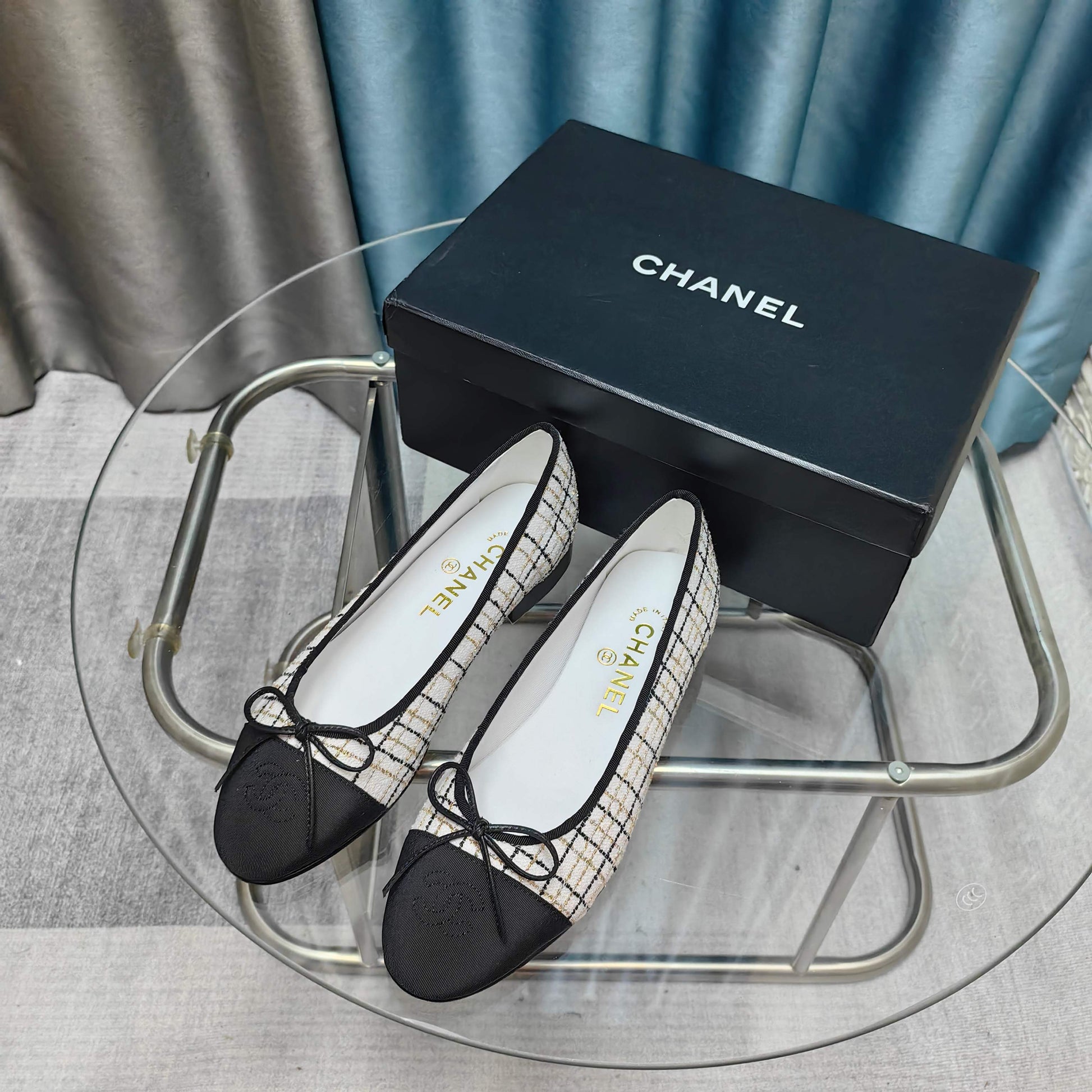 CC 25P Ballet Flat White Tweed Black Grosgrain