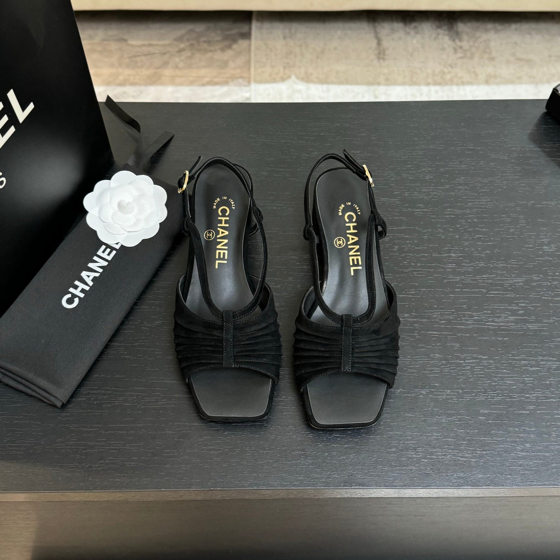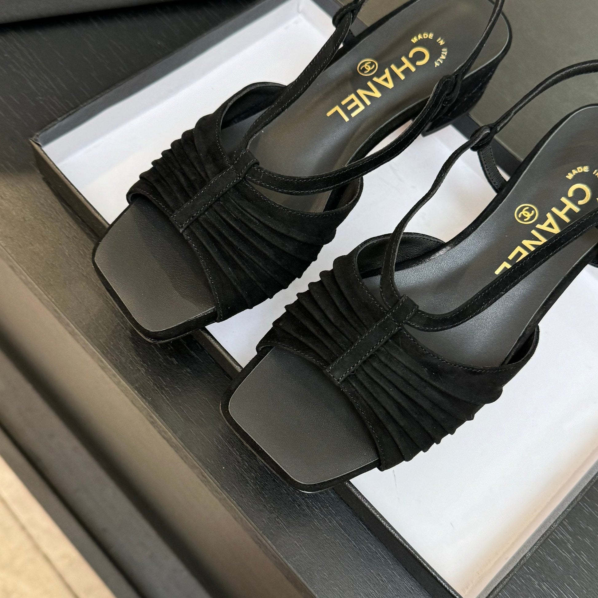 CC 25S Sandal Heel 50mm Black Suede Kidskin