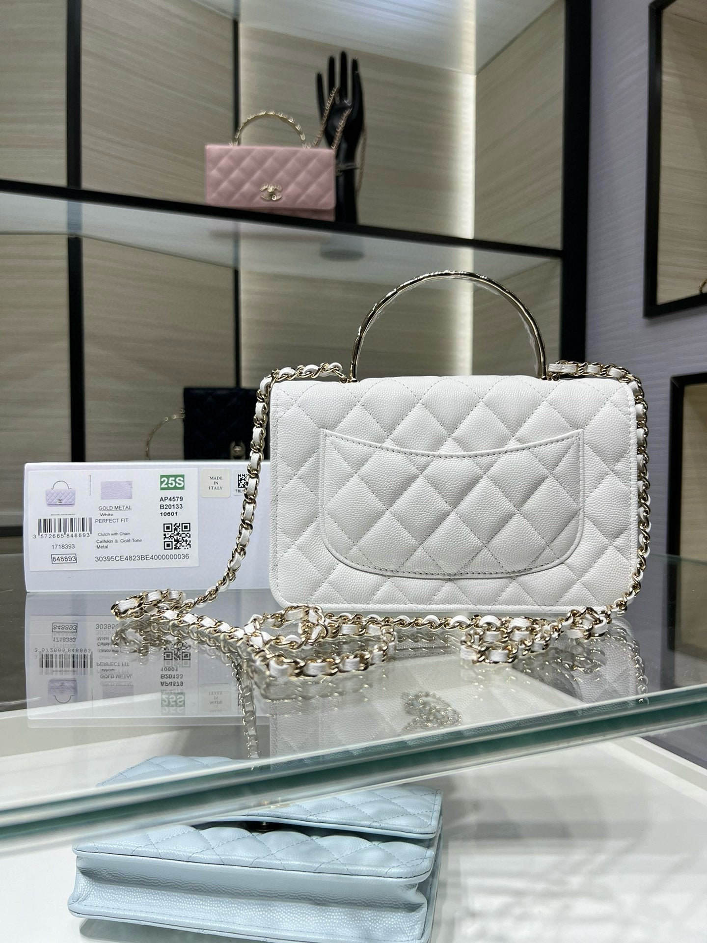 cc 25S Woc Top Handle 19cm White Grained Calfskin Light Gold Hardware