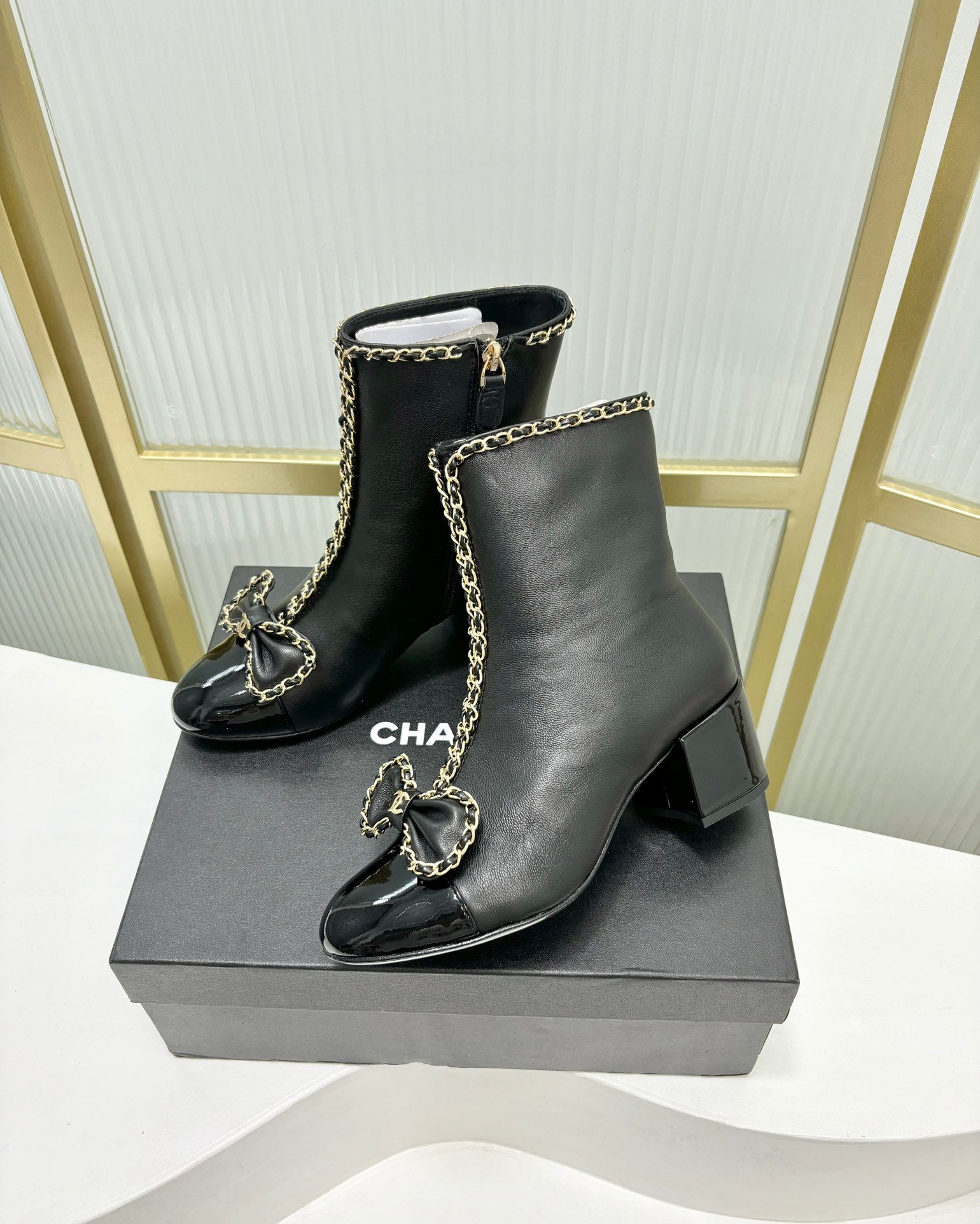 CC Ankle Boot 65 Black Calfskin Patent Calfksin Leather Strap