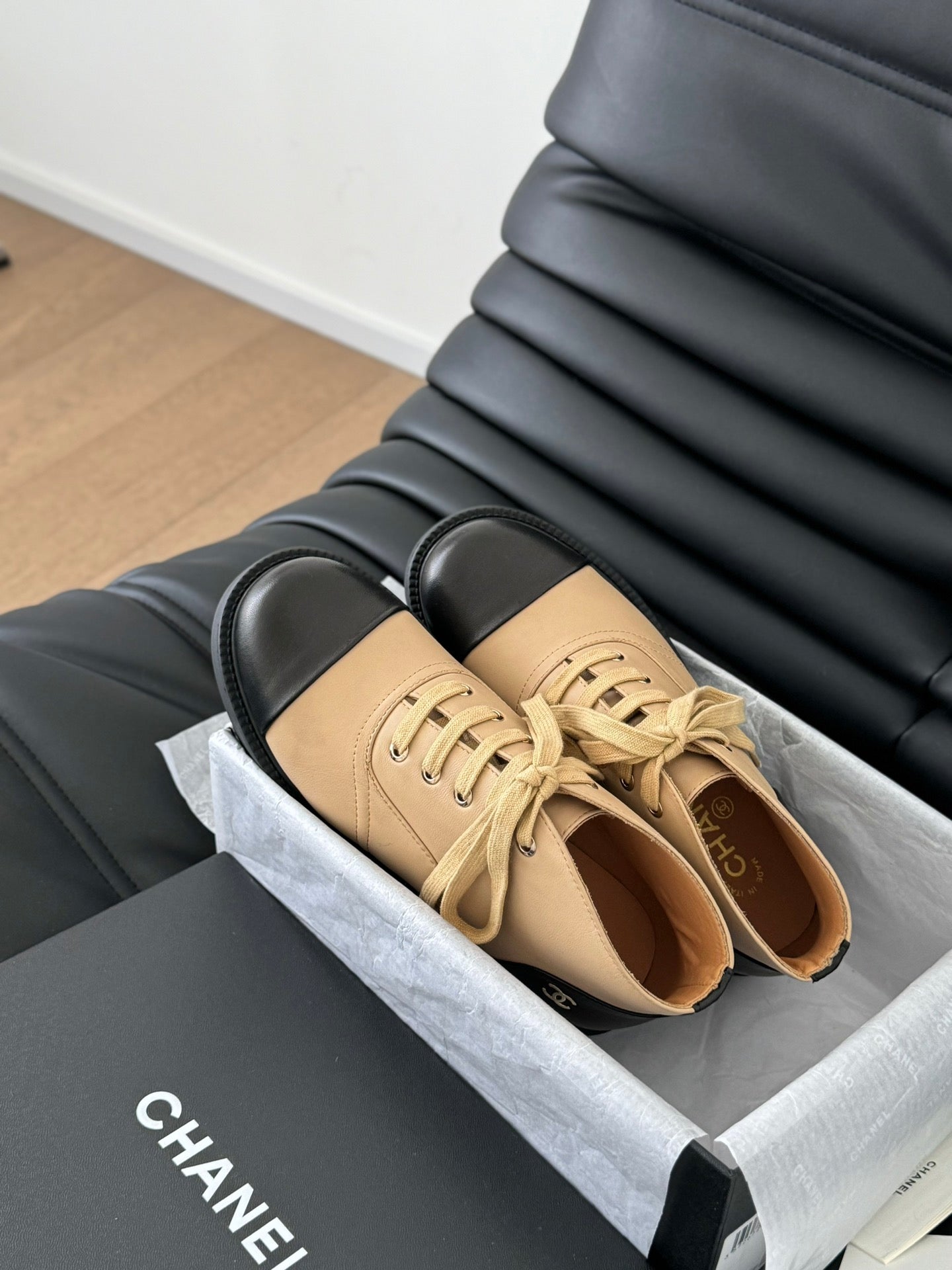 CC Ankle Boots Dark Beige Mix Black Calfskin 937064