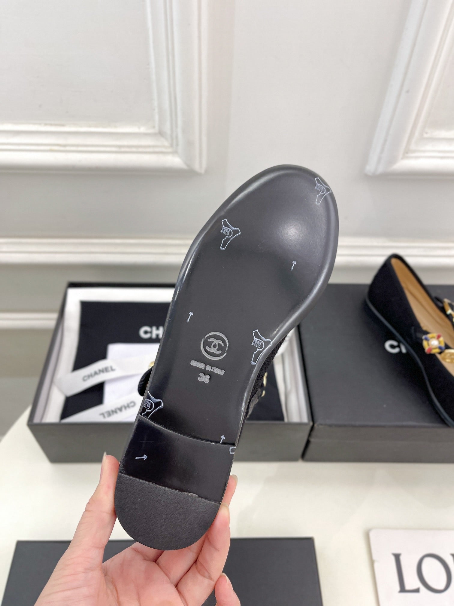 CC Ballet Flats 10mm Black Wool Tweed And Fabric 948826