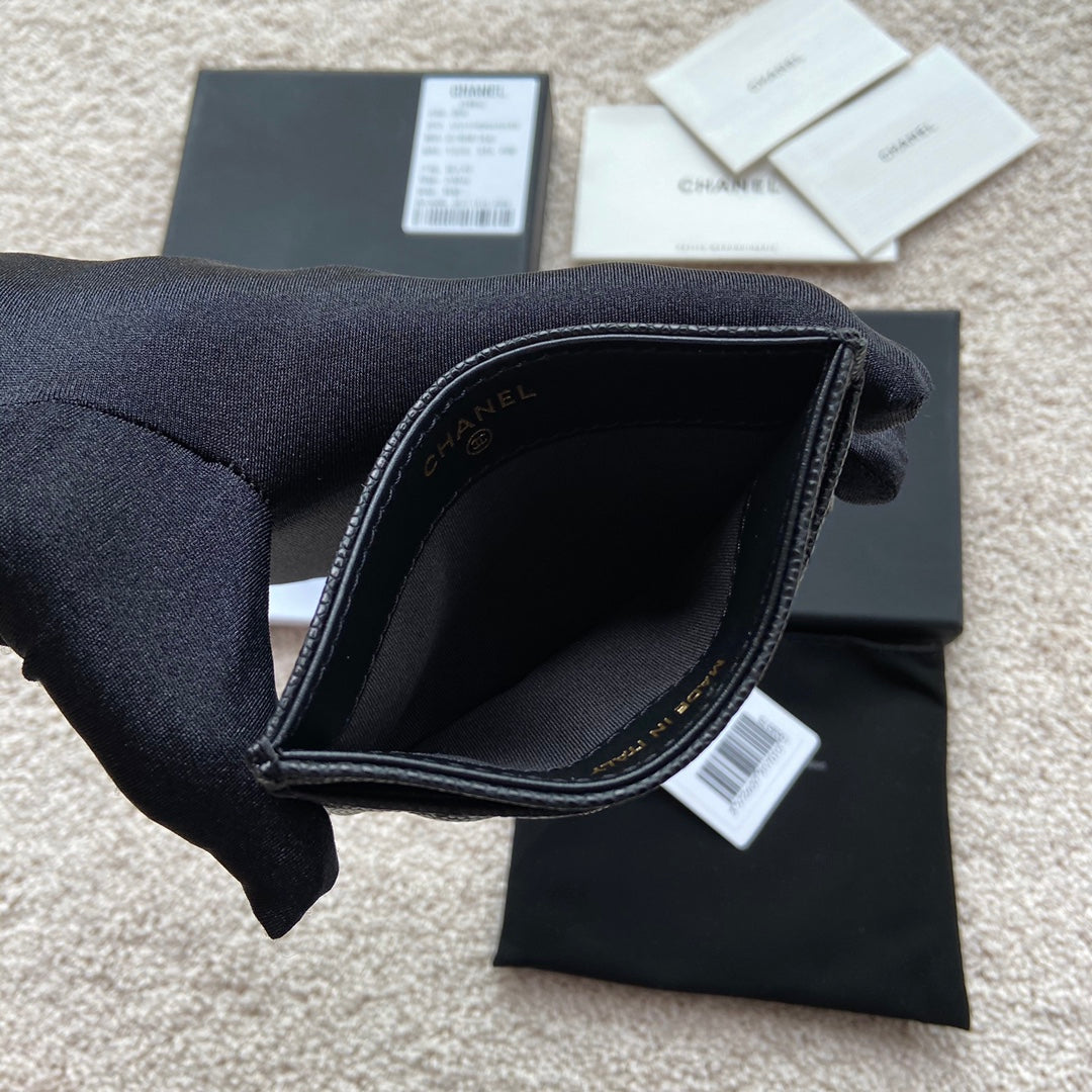 cc card holder 11cm black caviar light gold hardware