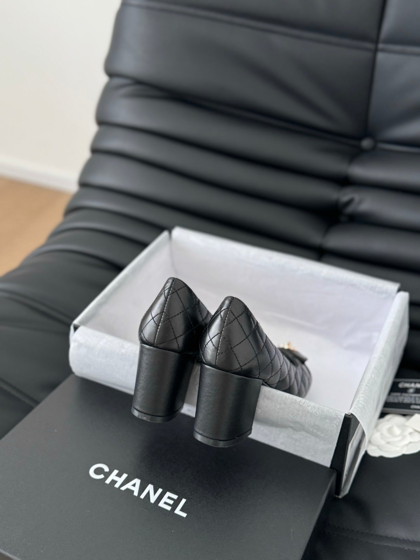 cc classic ballet flat with heel black quilted calfskin