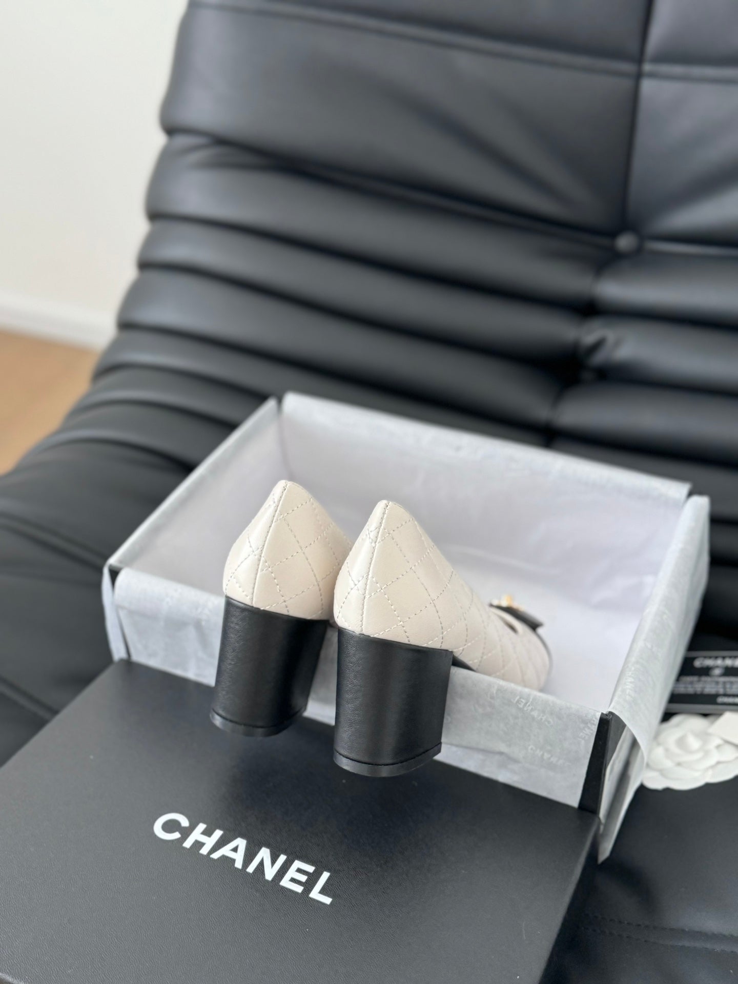 cc classic ballet flat with heel white quilted calfskin