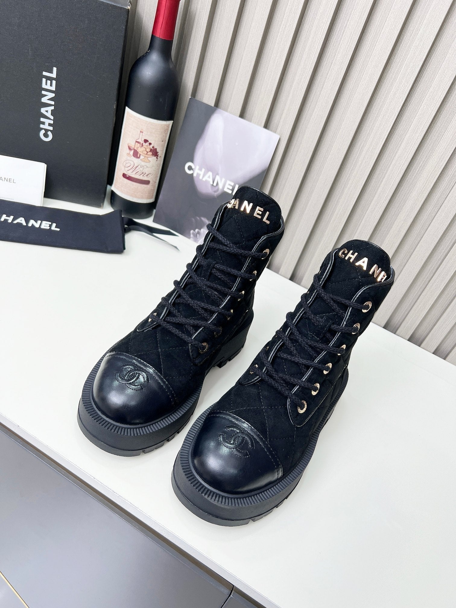 CC Combat Boots In Black Quilted Suede And Lambskin 944576