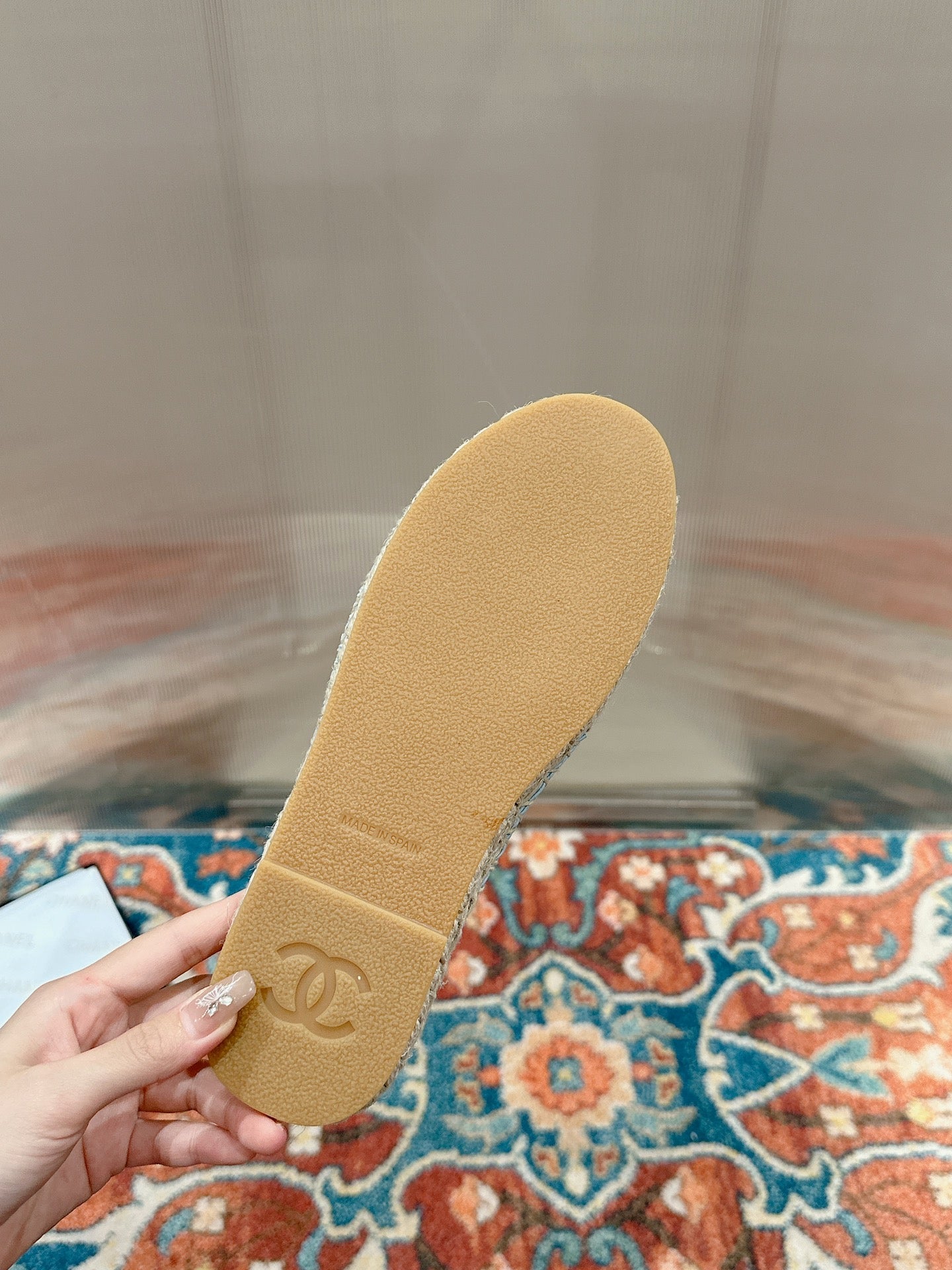 cc espadrilles mule cloud blue fabric white sequin