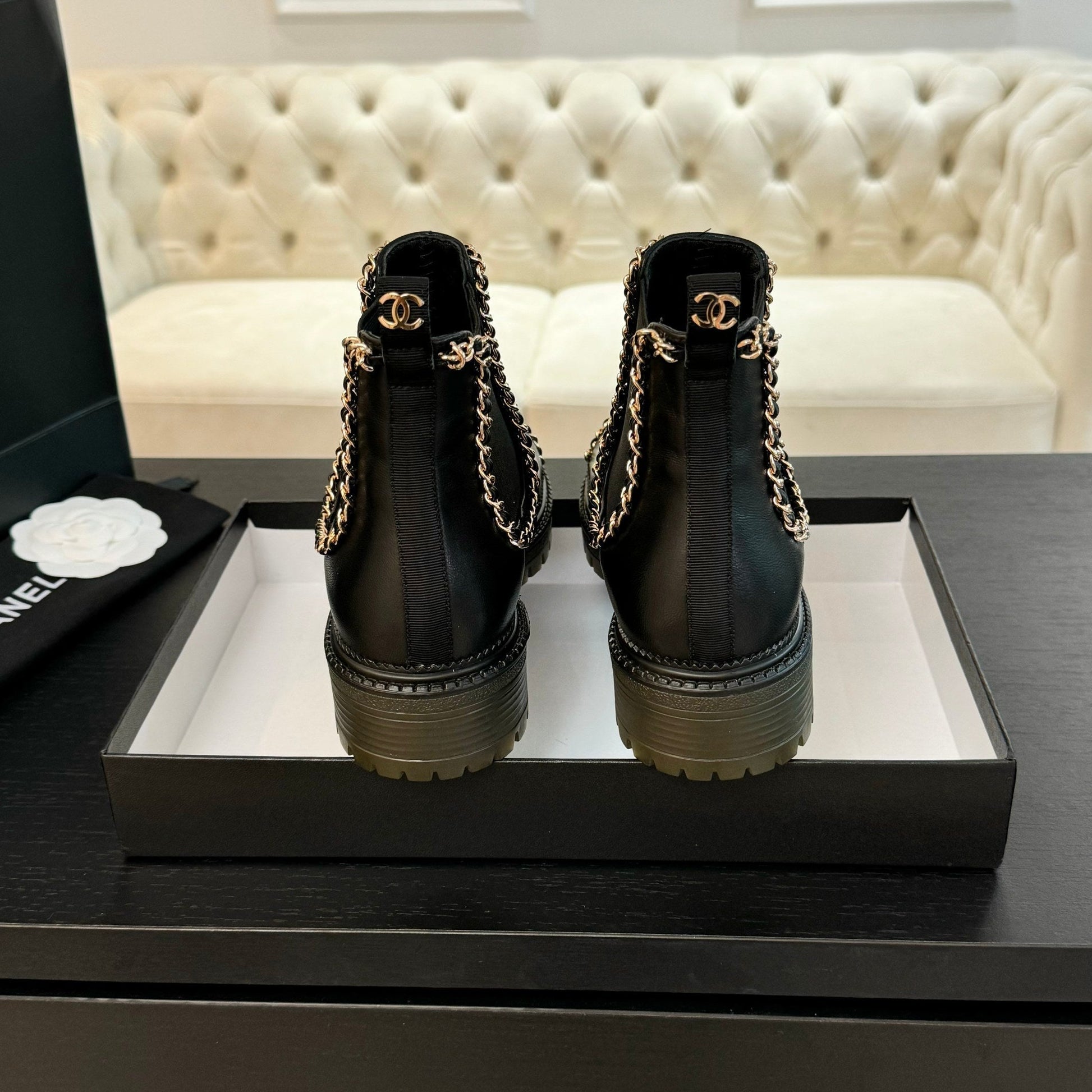 CC Flat Ankle Boots Black Chain Cowhide