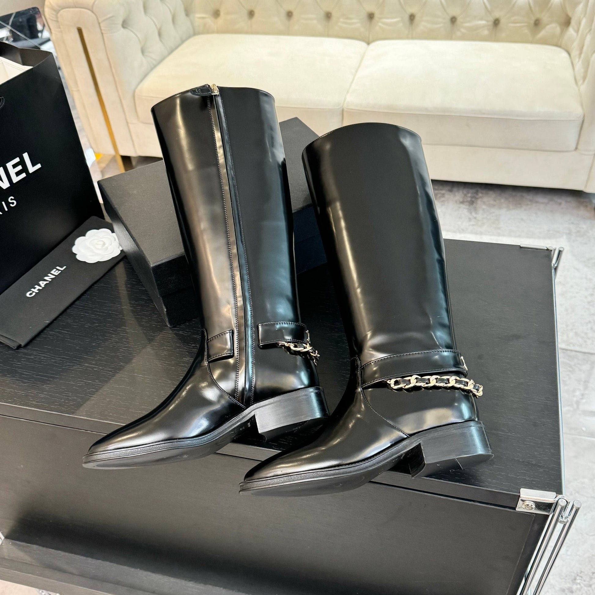 CC High Boots 30mm Glossy Black Chain Cowhide