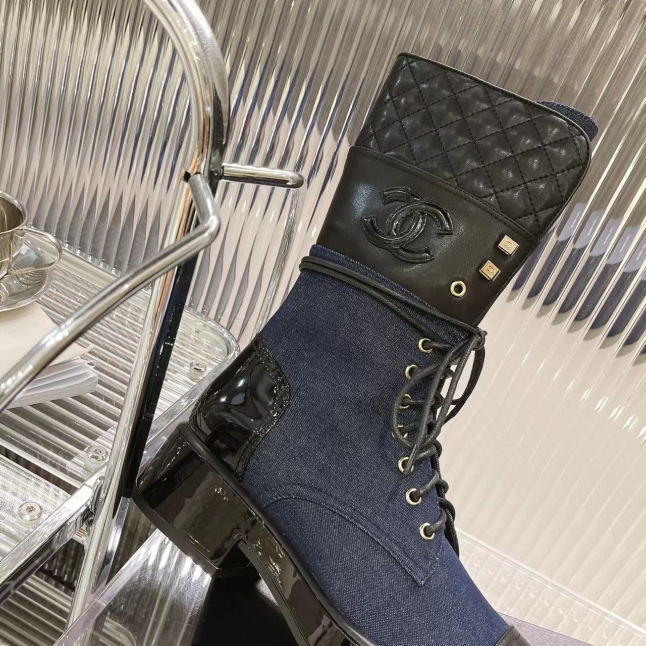 CC High Boots 45mm Dark Blue Denim Fabric And Quilted Cowhide