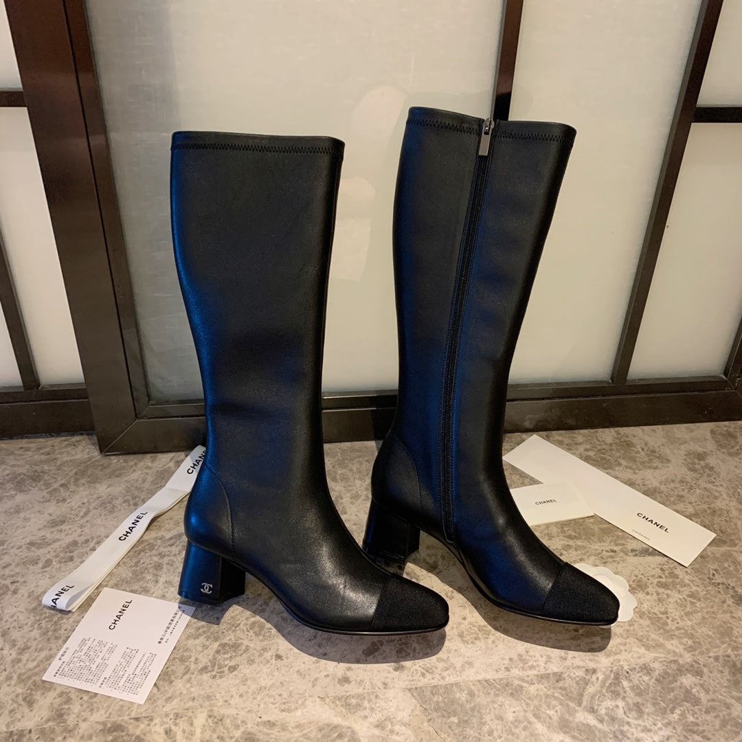 CC High Boots 50mm In Black Lambskin And Lycra Fabric 940063