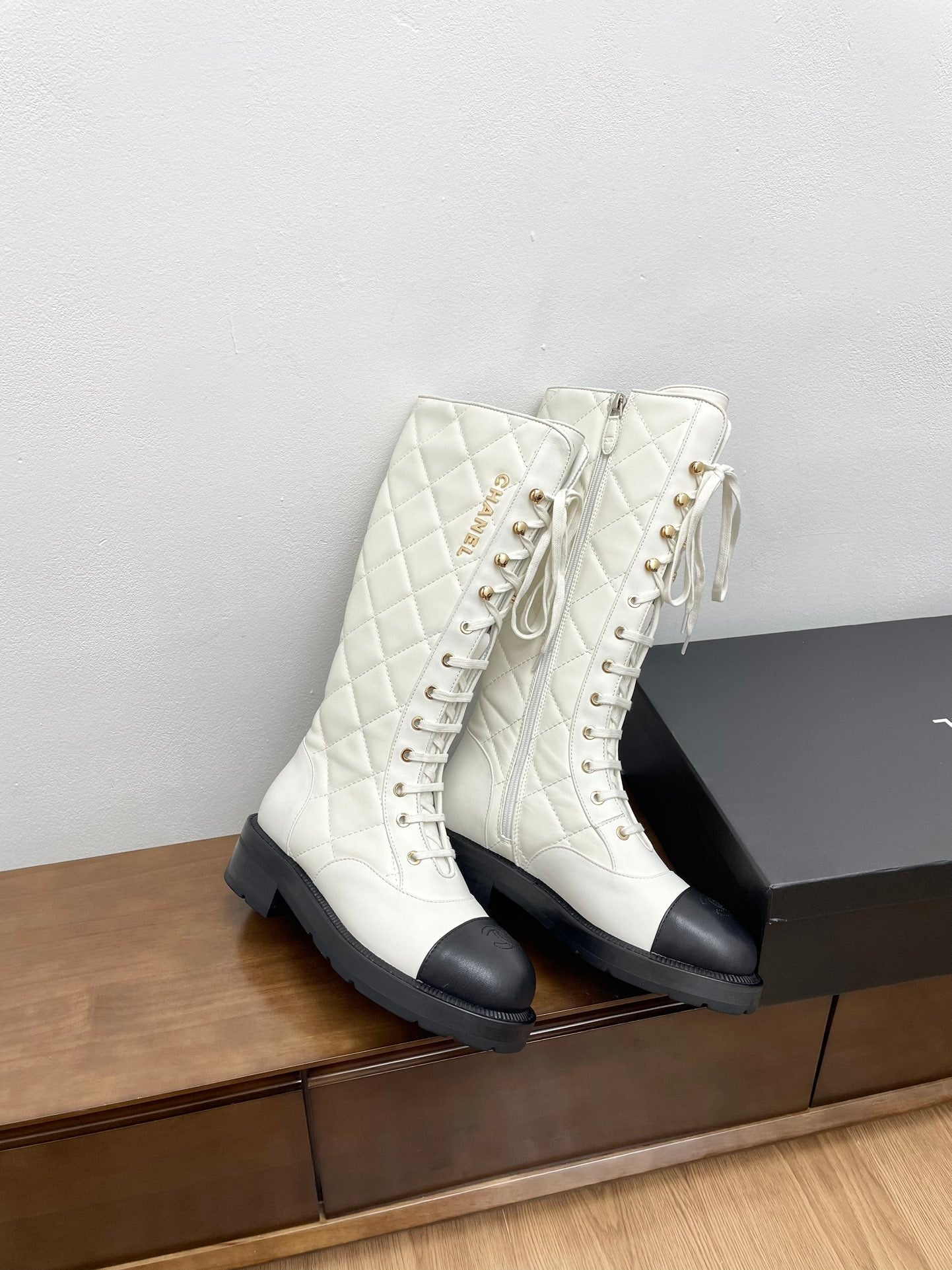 CC High Boots White Quilted Cowhide