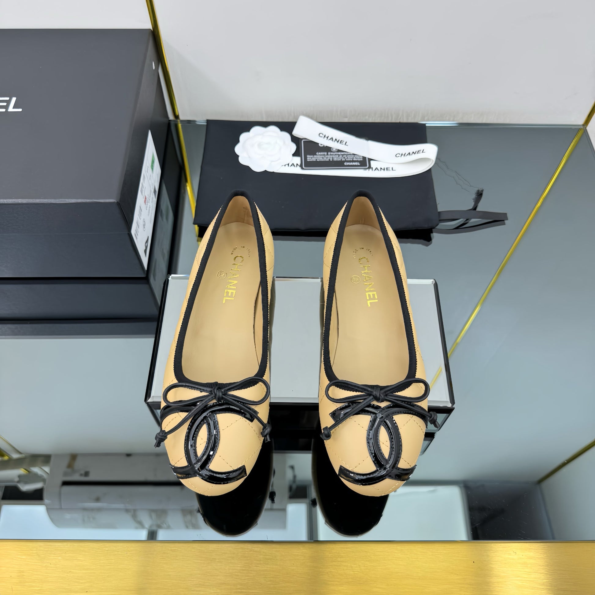 CC Loafers Beige Sheepskin Mix Bow 297796