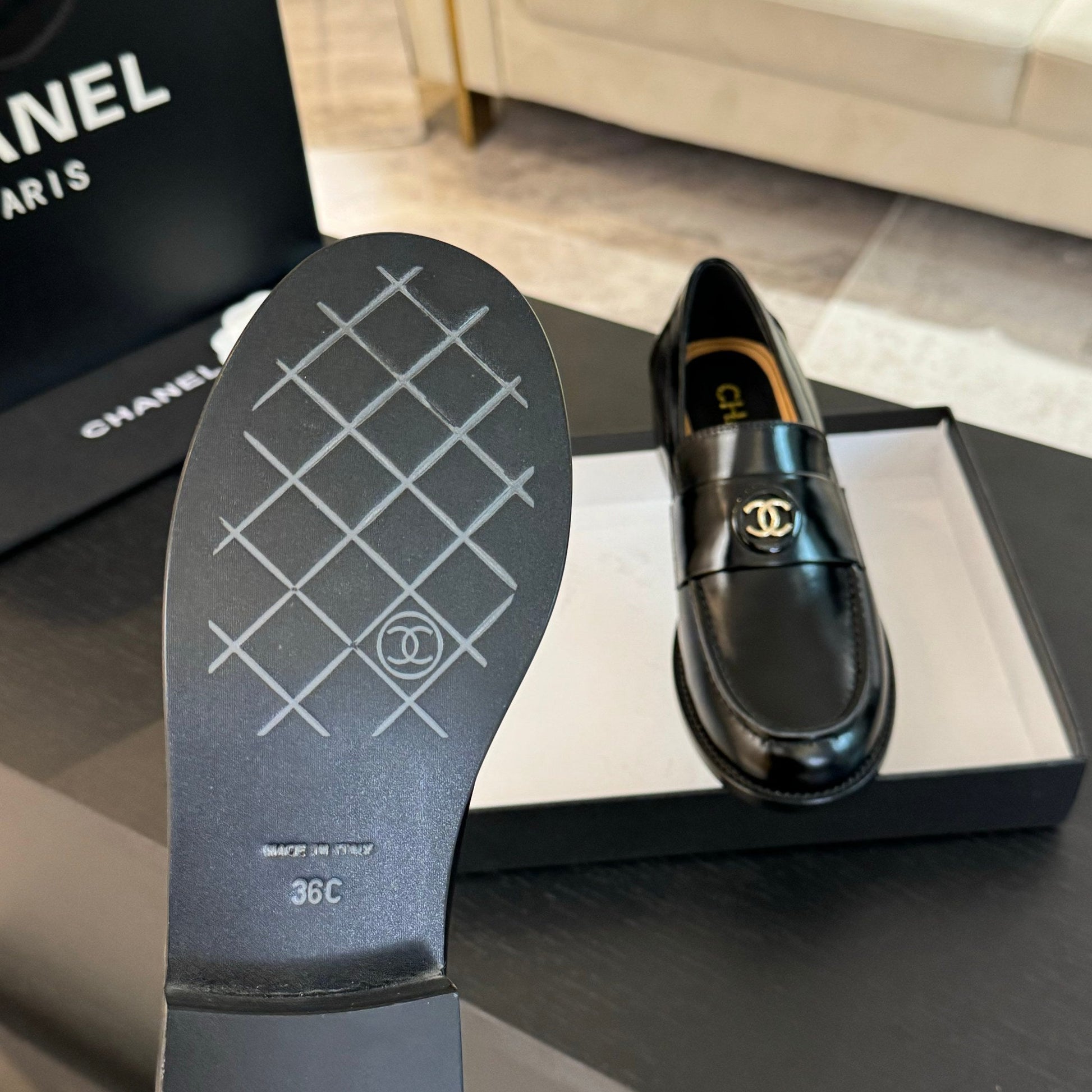 CC Moccasins Glossy Black Cowhide