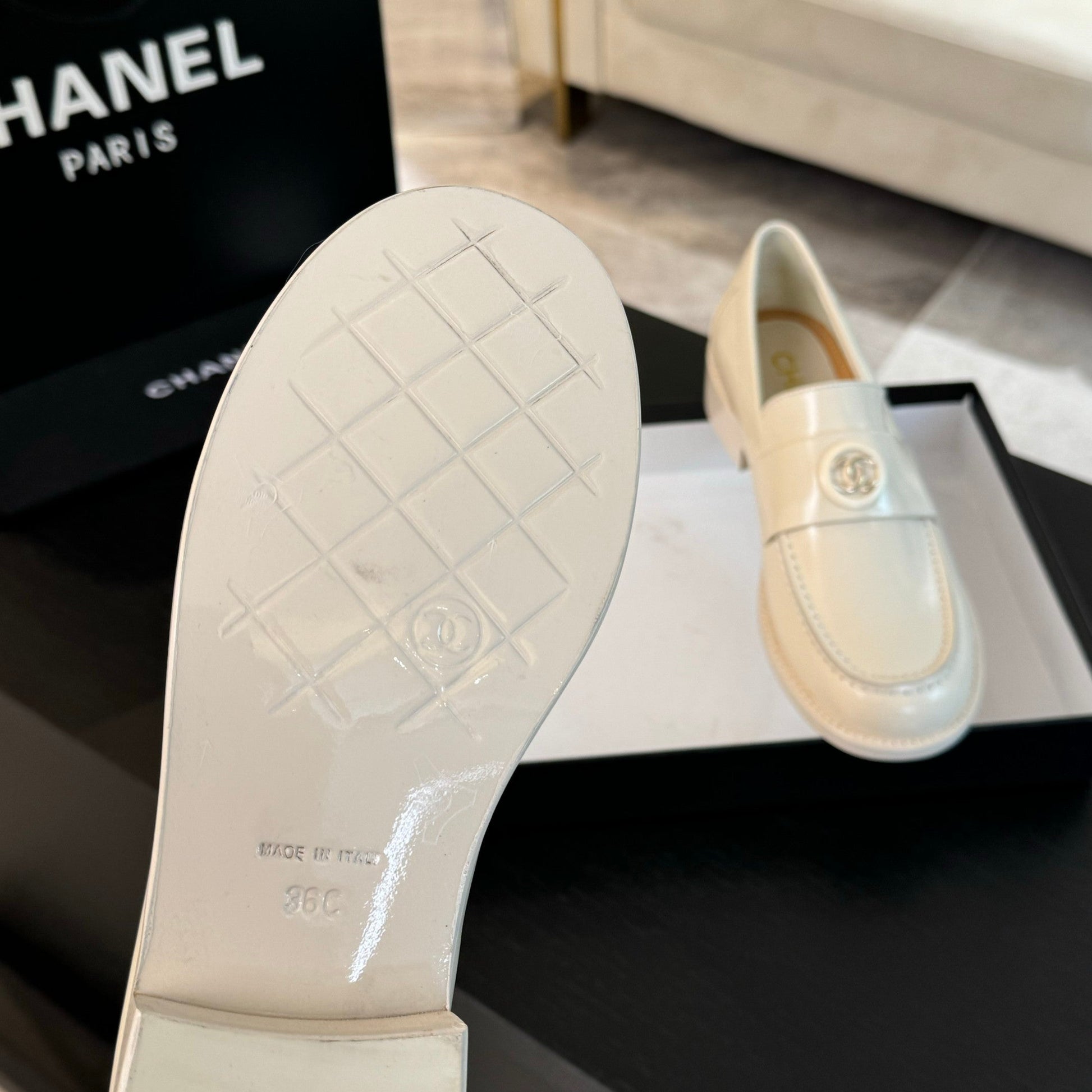CC Moccasins Glossy White Cowhide