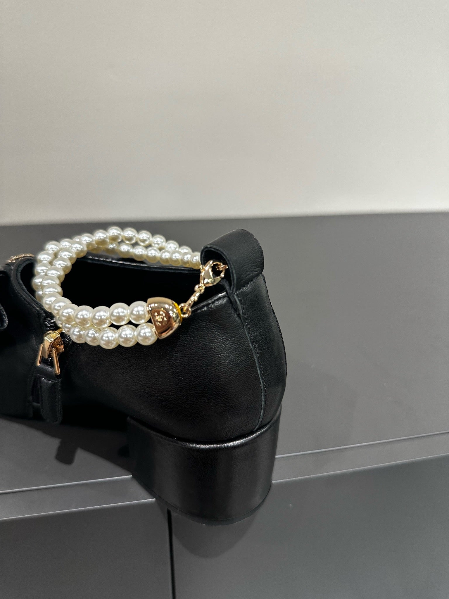 CC Pointed Toe High Heels Black Bow Tie Cowhide