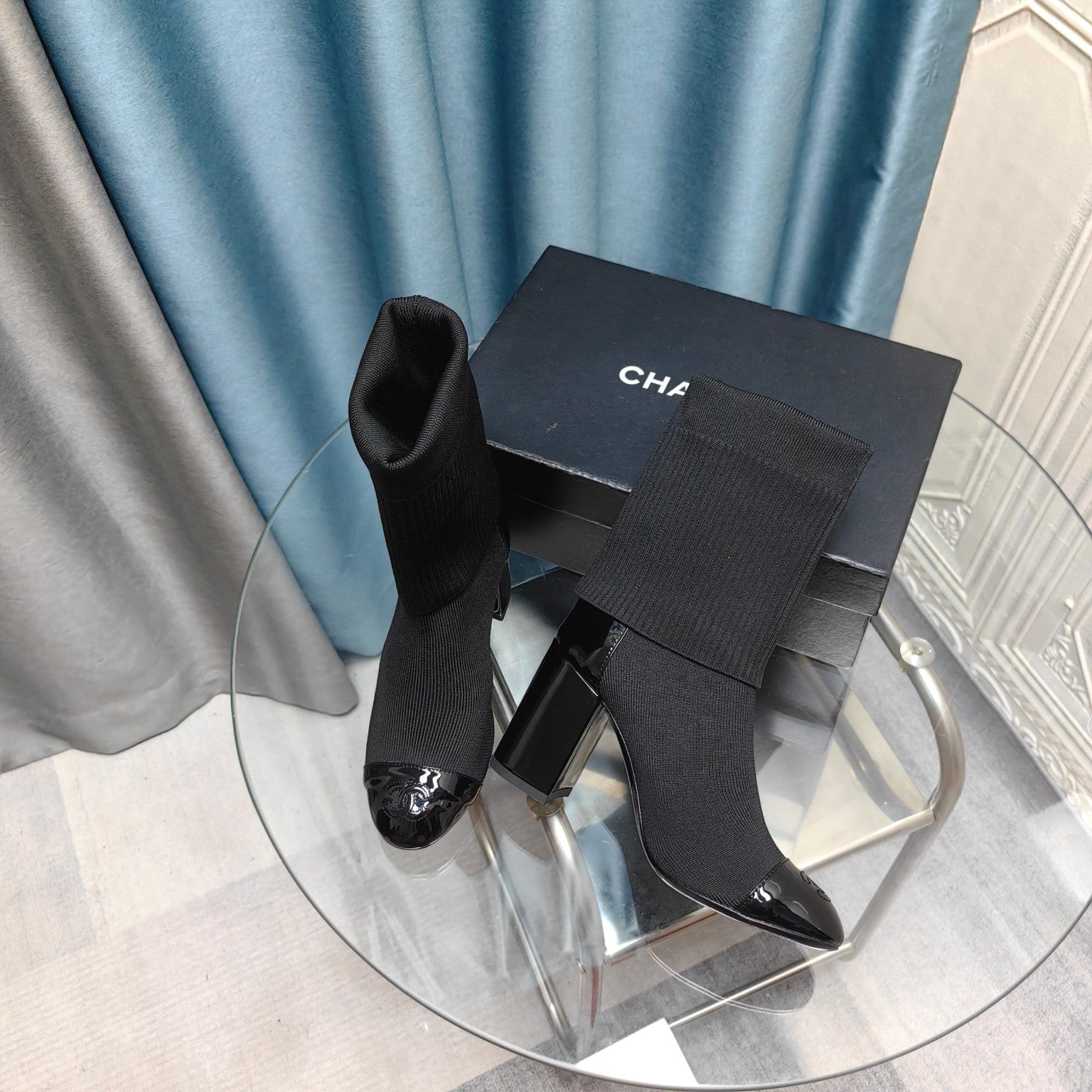 CC Short Boots 80mm Black Wool Fabric And Lambskin