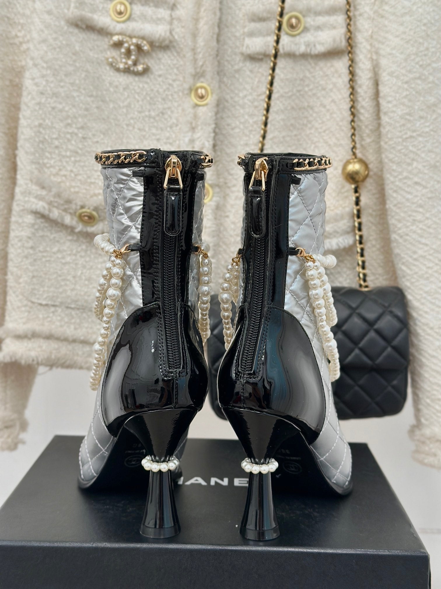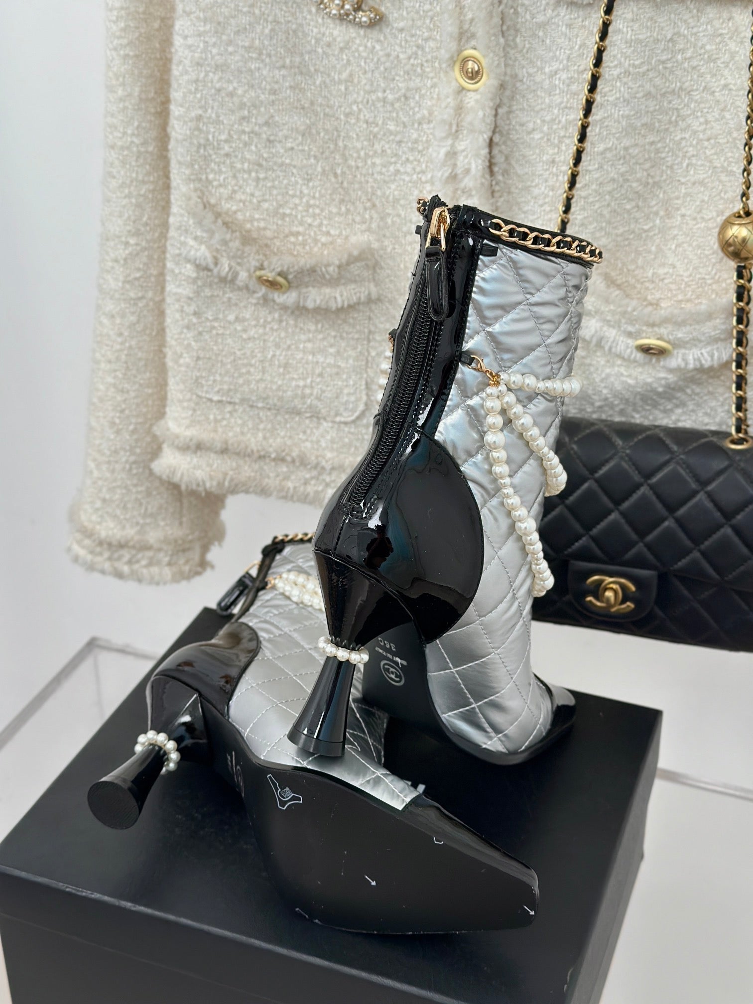 CC Short Boots 80mm Silver Wrinkled Quilted Calfskin