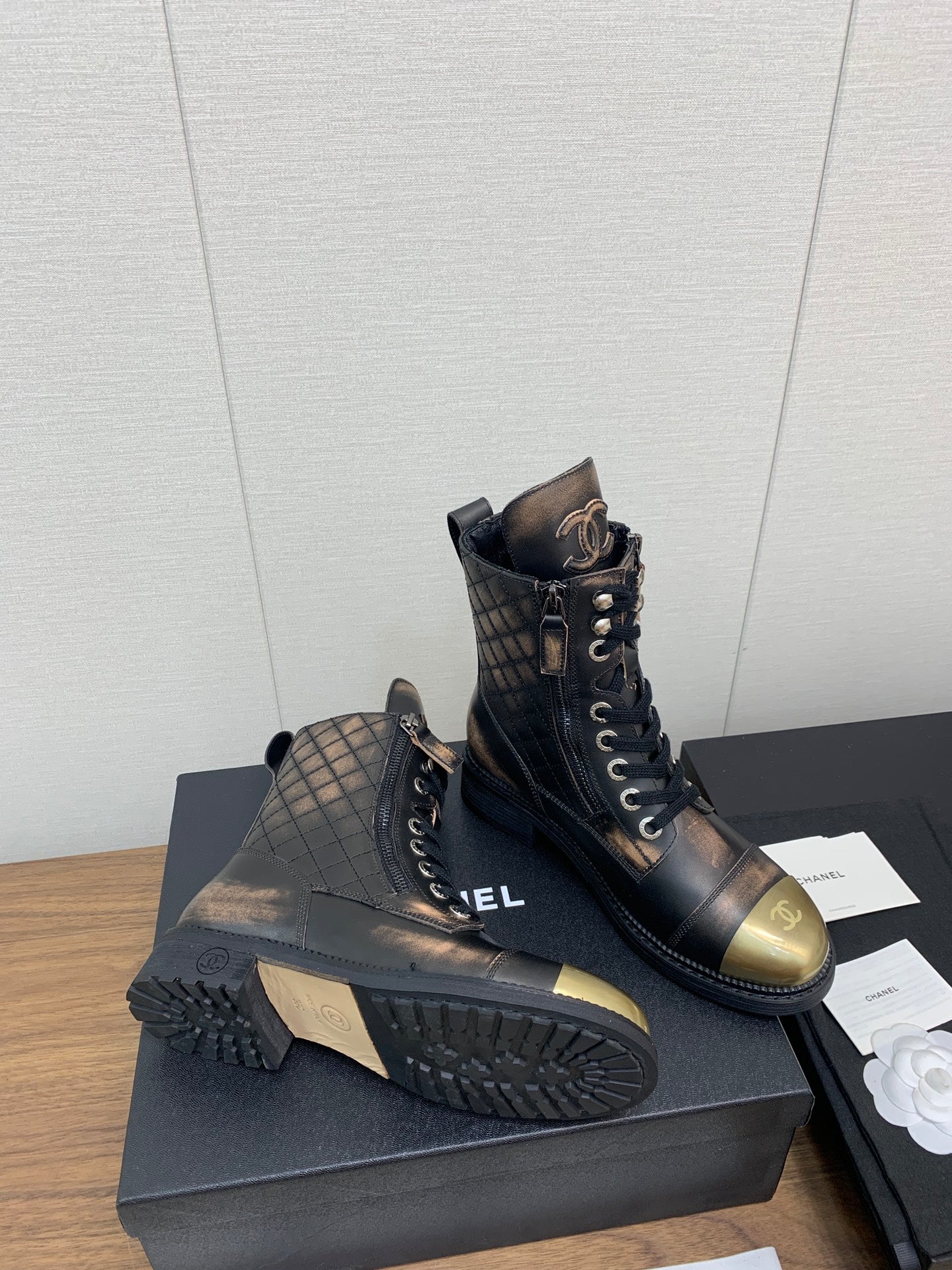 CC Short Boots Brown Black Yellow Cowhide