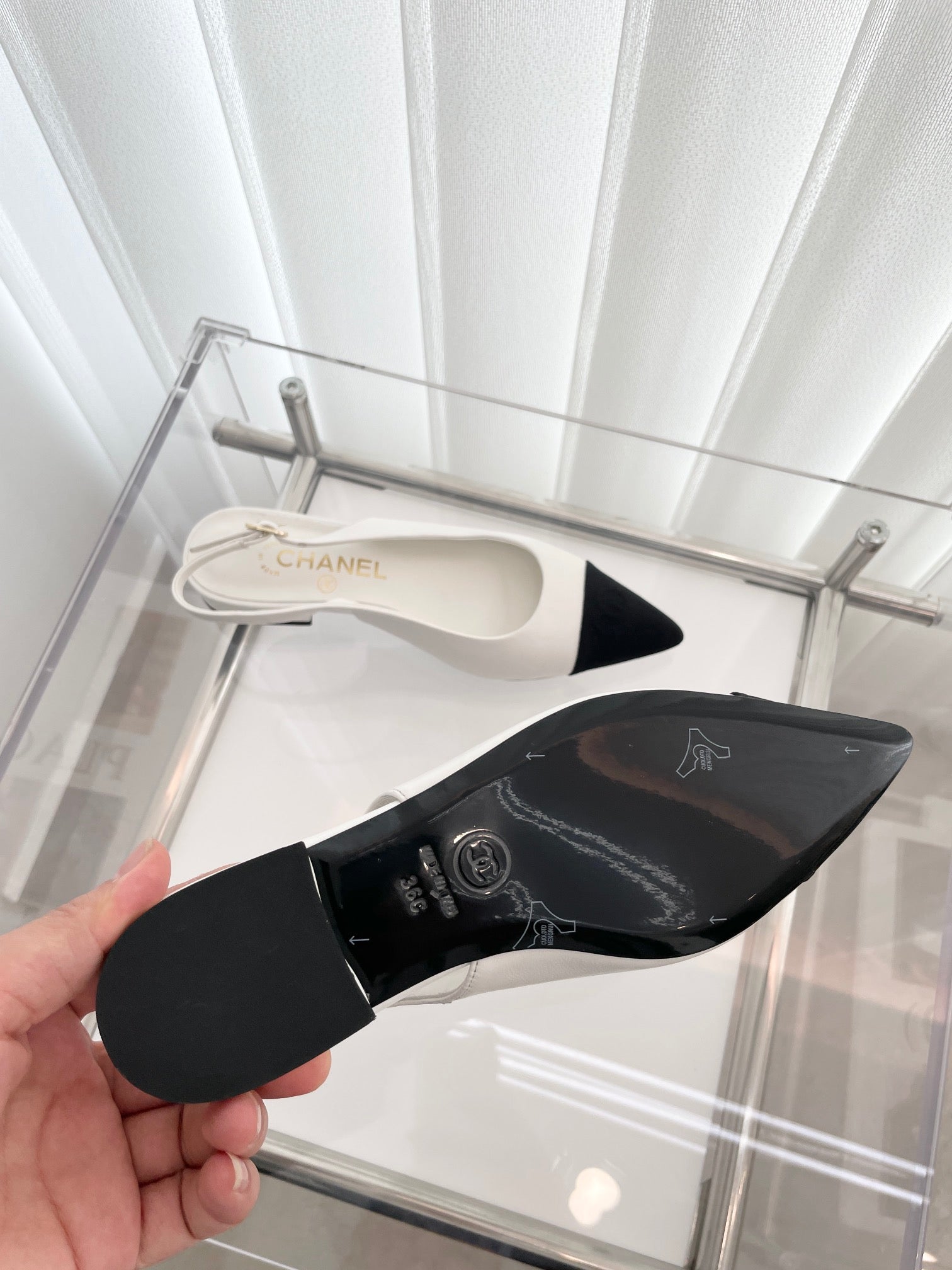CC Slingback 15mm White Lambskin And Denim Fabric