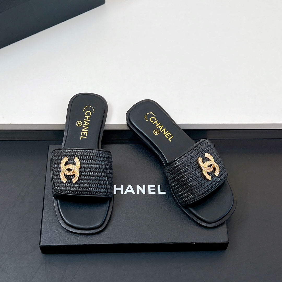 CC Slippers In Black Palm Fiber 149729