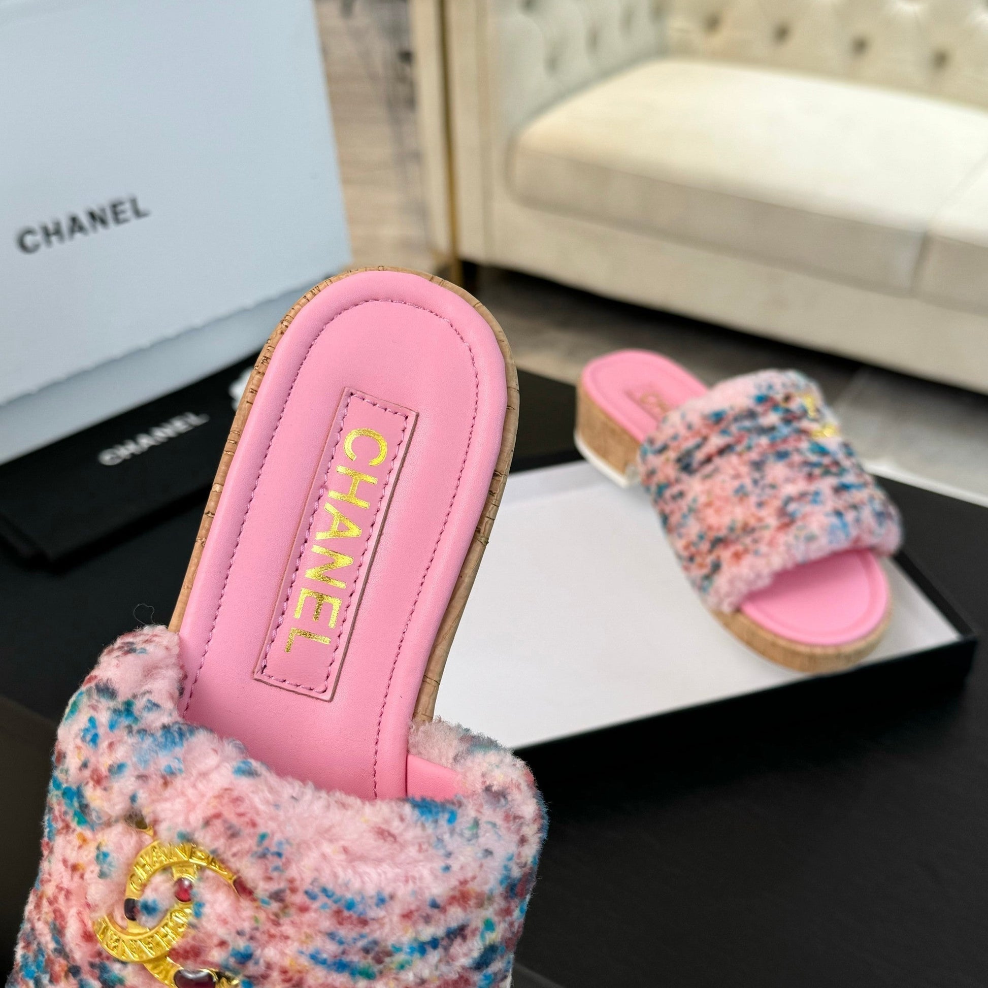 CC Slippers Pink Mix Blue Red Wool And Calfskin