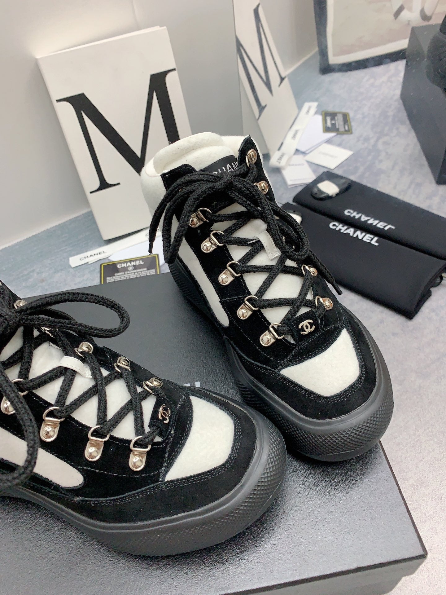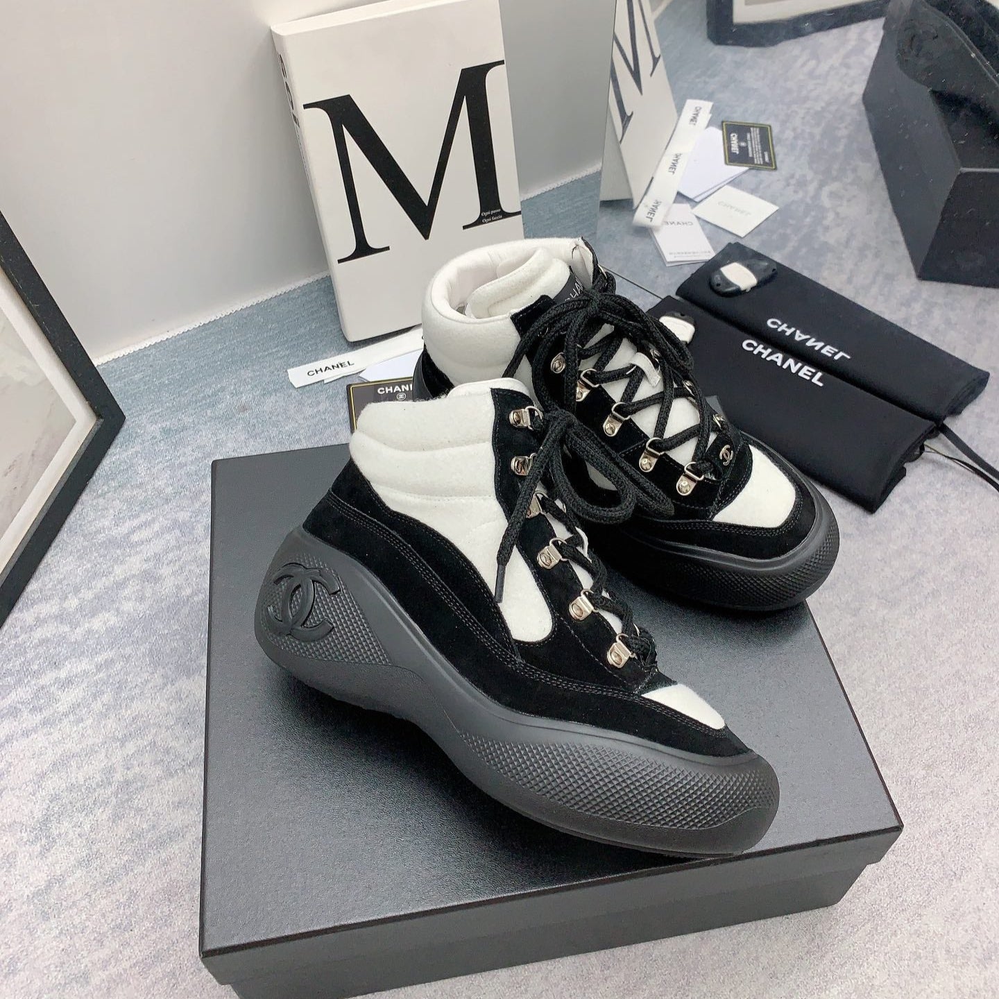CC Sneaker Boots In White Mix Black Suede 148777