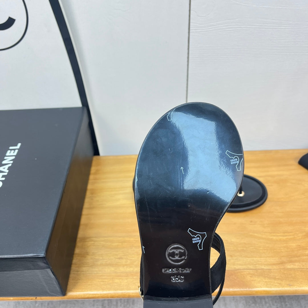 cc thong sandal 30mm black calfskin multicolor cc logo