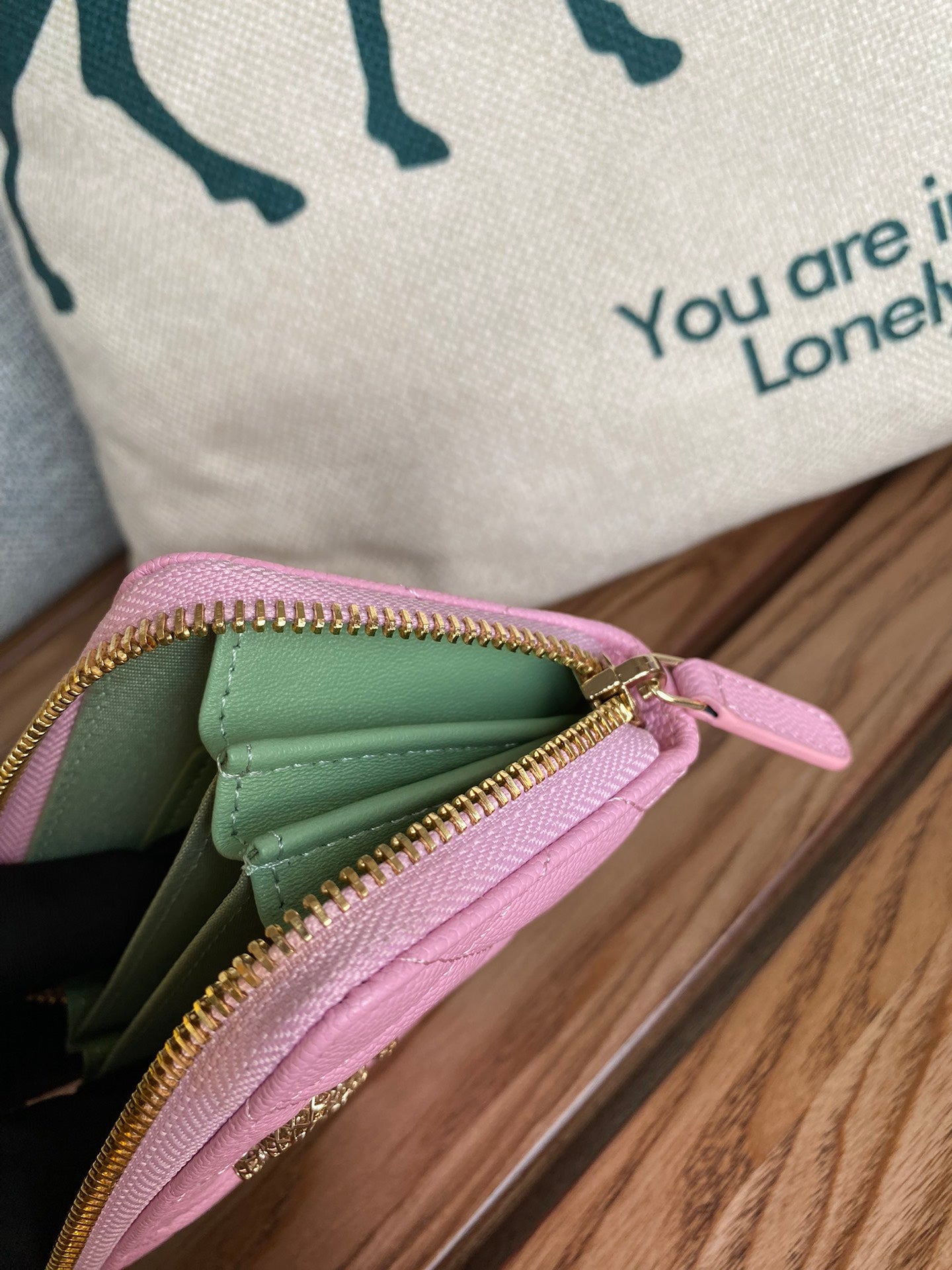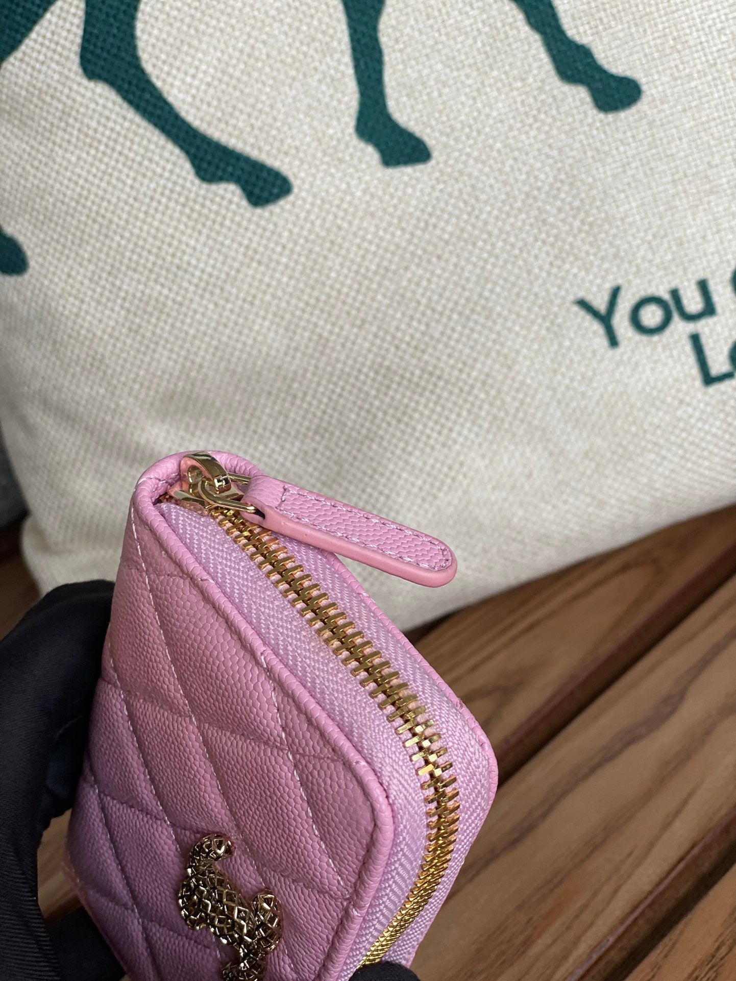 cc zipped wallet 11cm pink caviar gold hardware