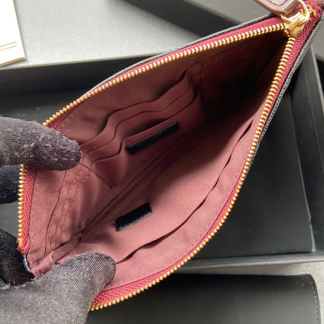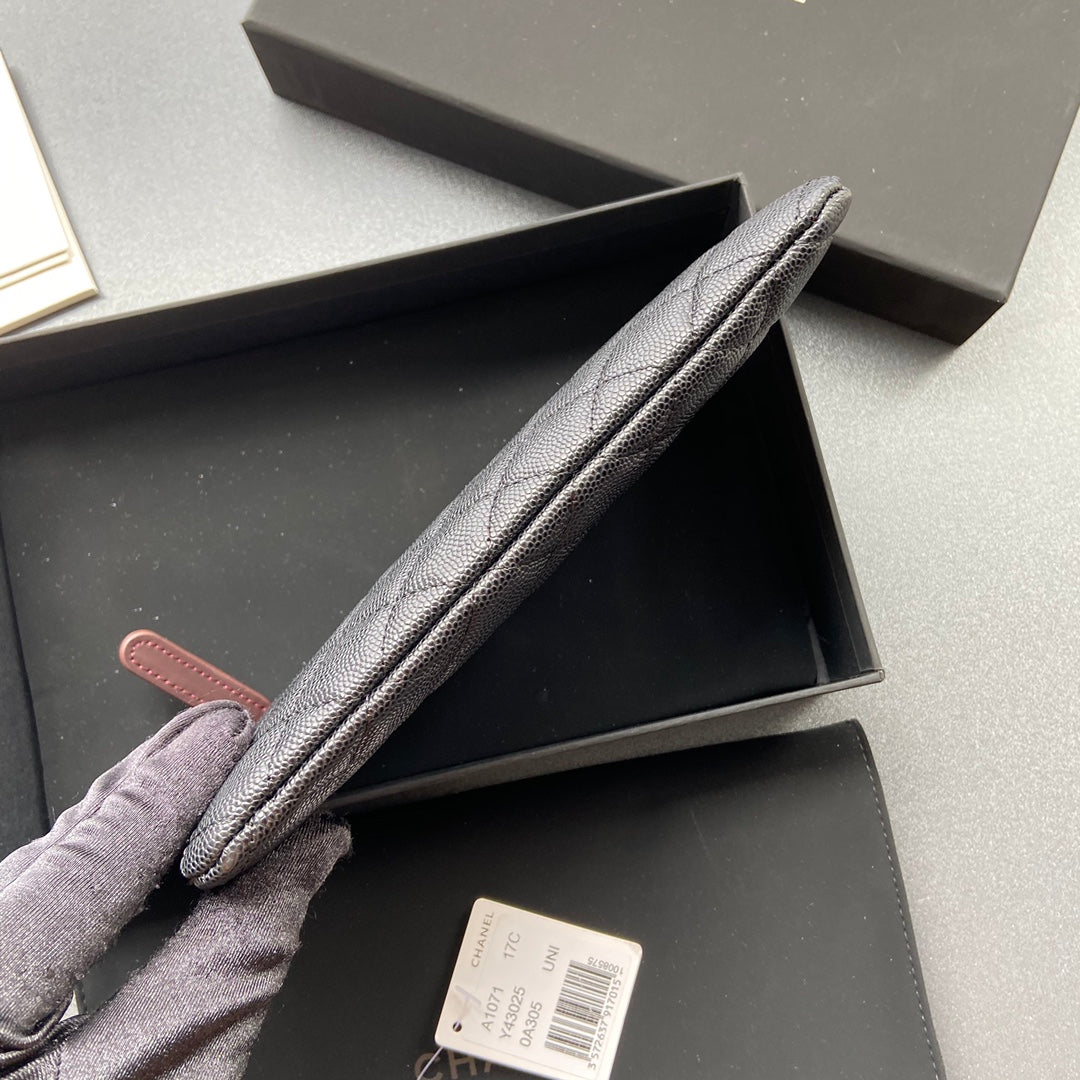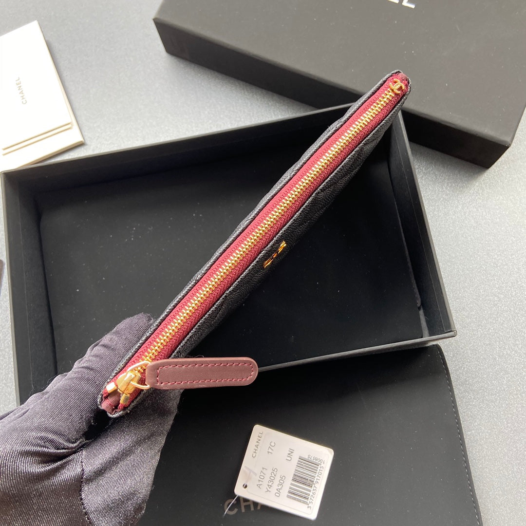 cc zipped wallet 20cm black quilted caviar gold hardware