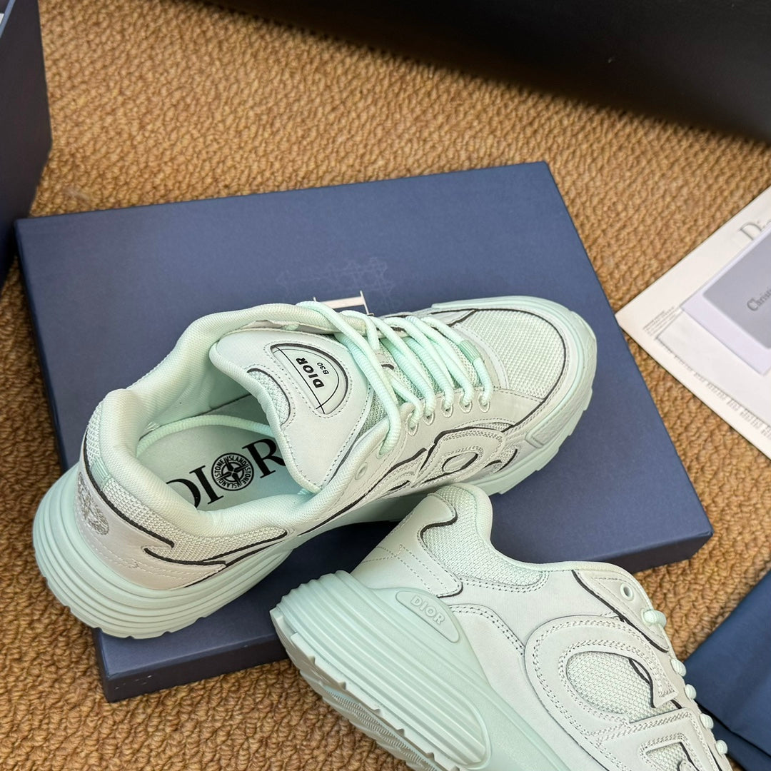 CD And Stone Island B30 Sneaker Light Turquoise Cowhide And Polyester Mesh Fabric
