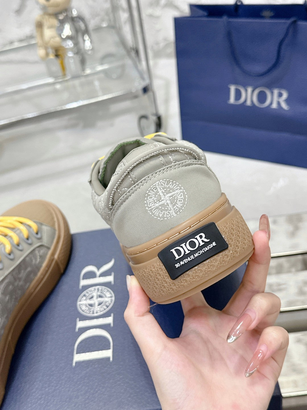 CD B33 Sneaker 40mm In Grey Mix Brown Monogram Satin Embroidery Fabric 103984