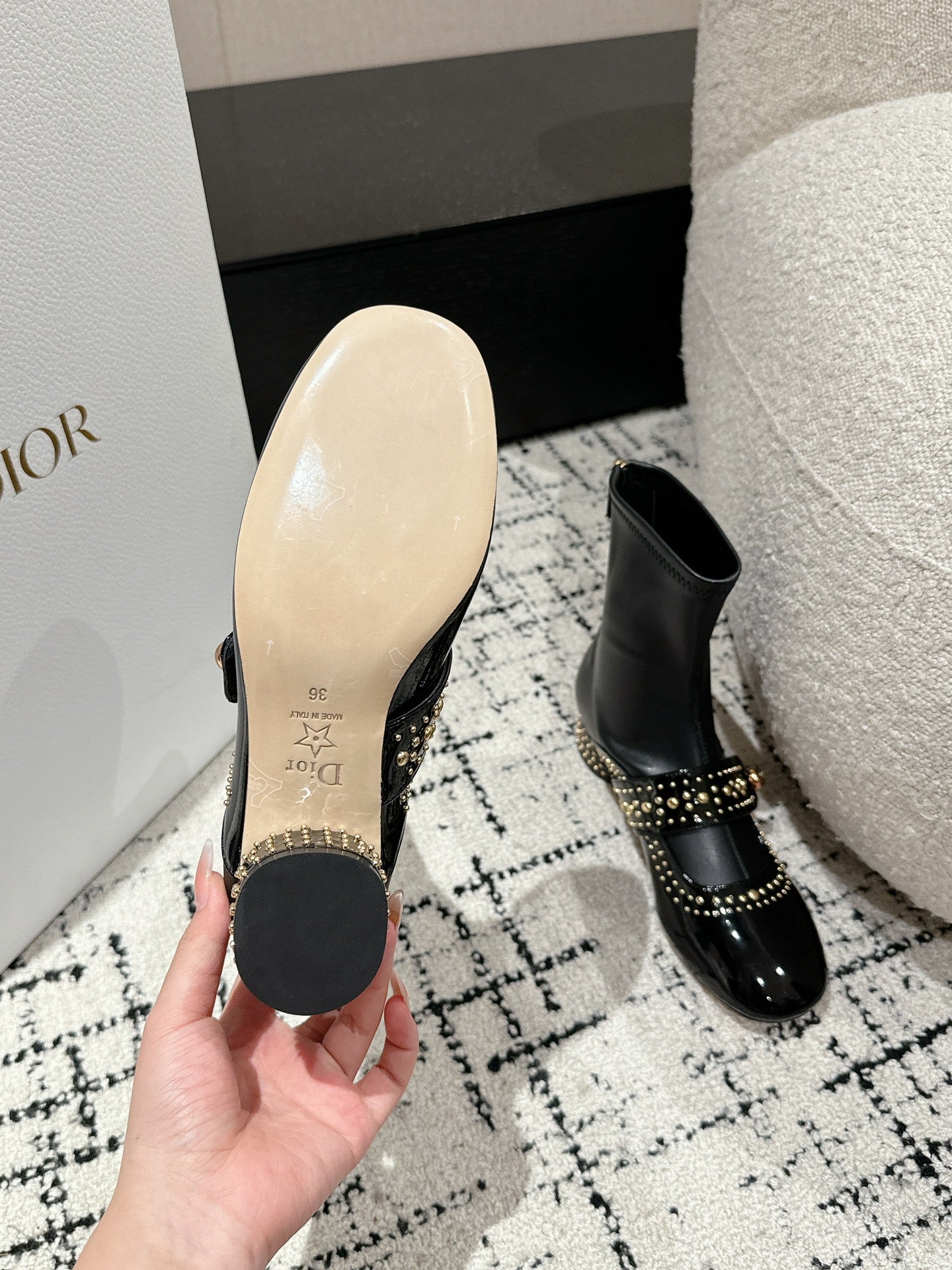 CD Belle-D Heeled Ankle Boot Black Lambskin