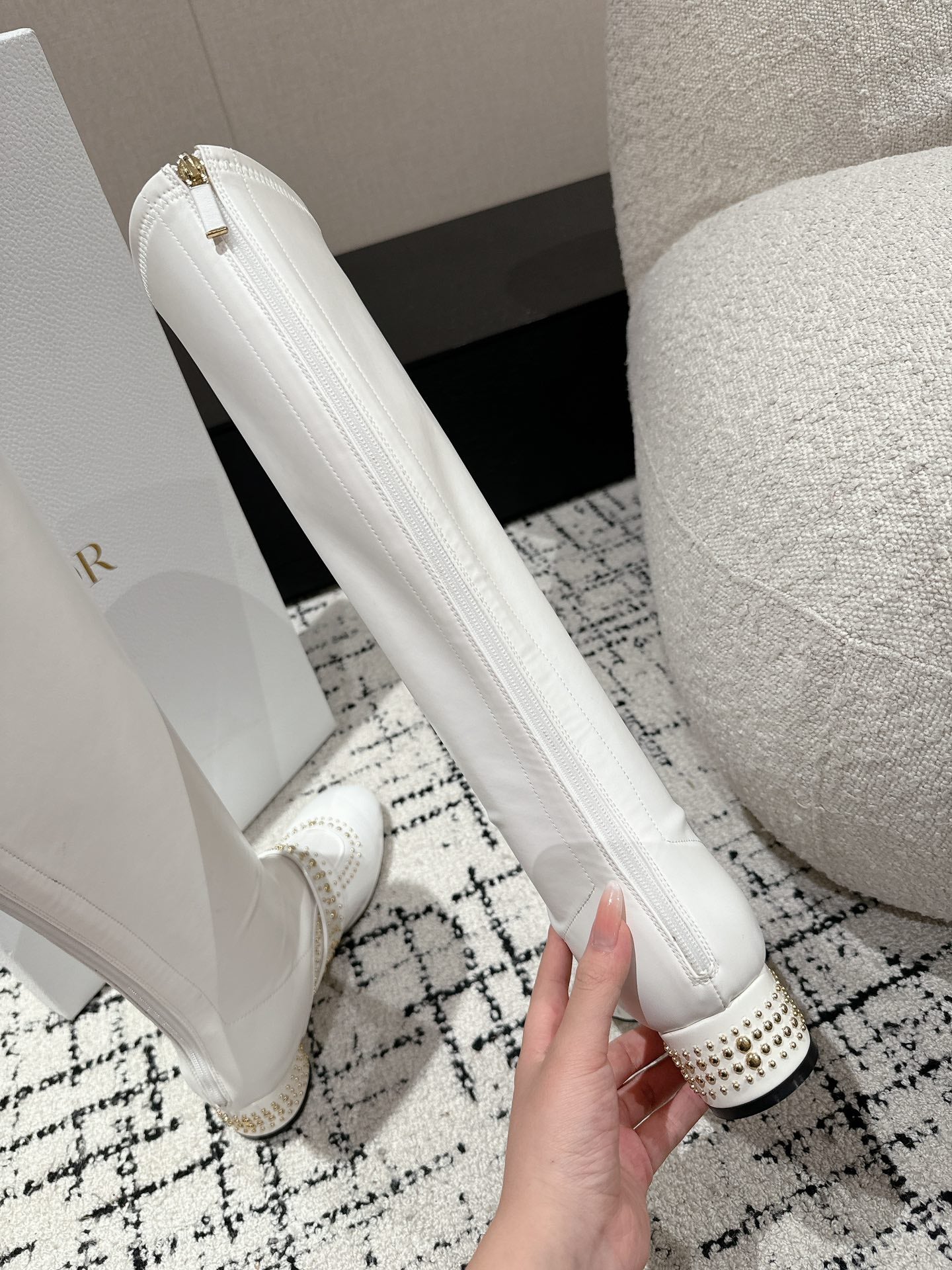 CD Belle-D Heeled Boot White Lambskin