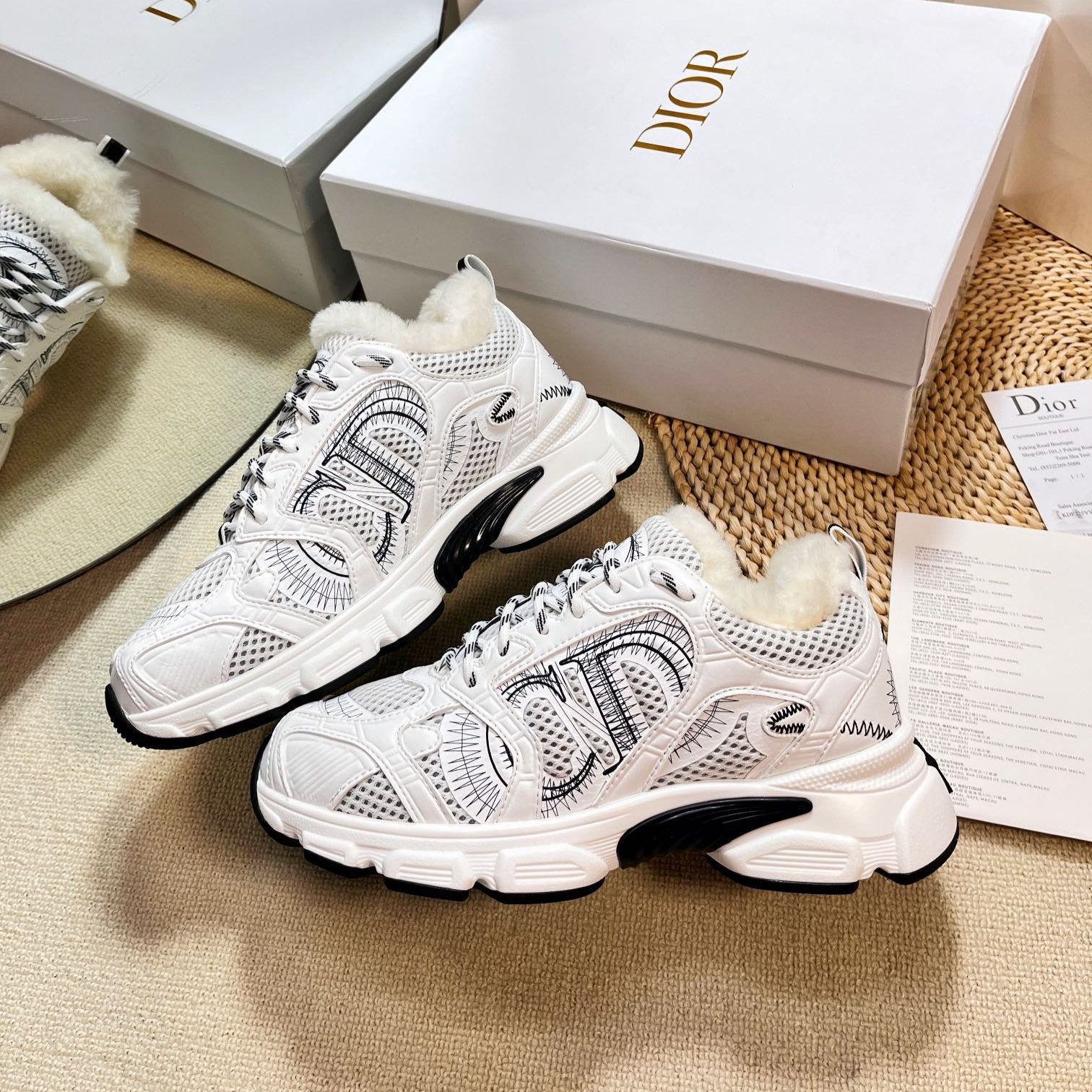 CD Chrono Sneaker In White Mesh Fabric With Fleece Lining 992618