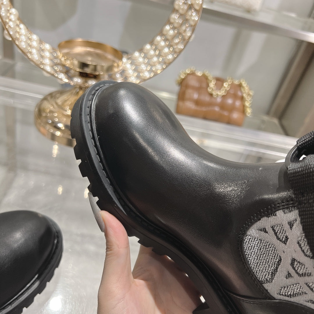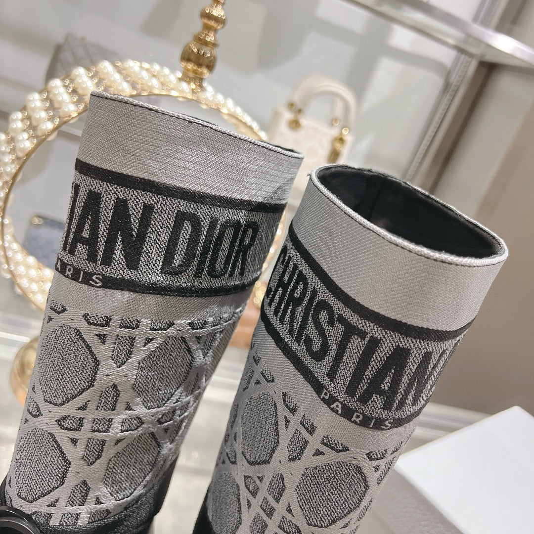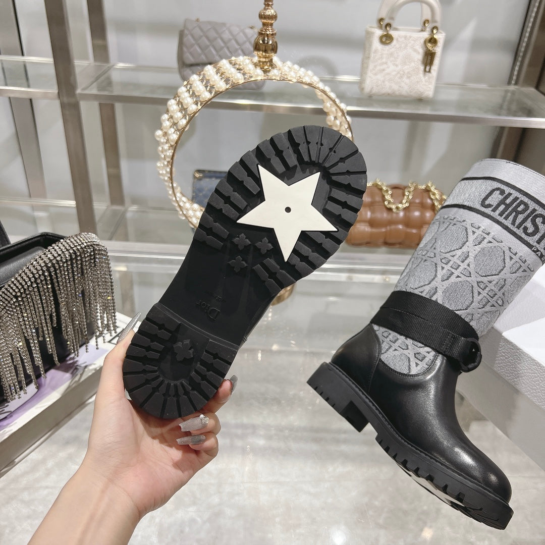 CD D-Major Boot Grey Mix Black Calfskin And Denim Fabric