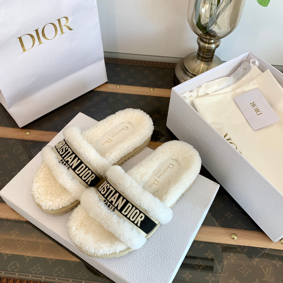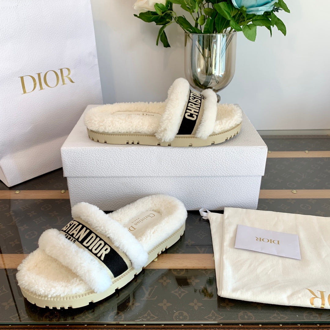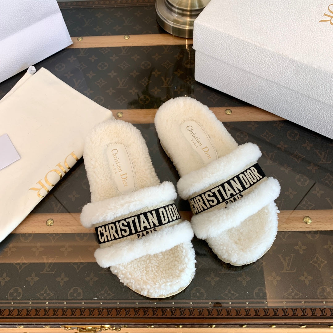 CD Dway Slide Black White Wool Fleece Lining And Canvas Fabric