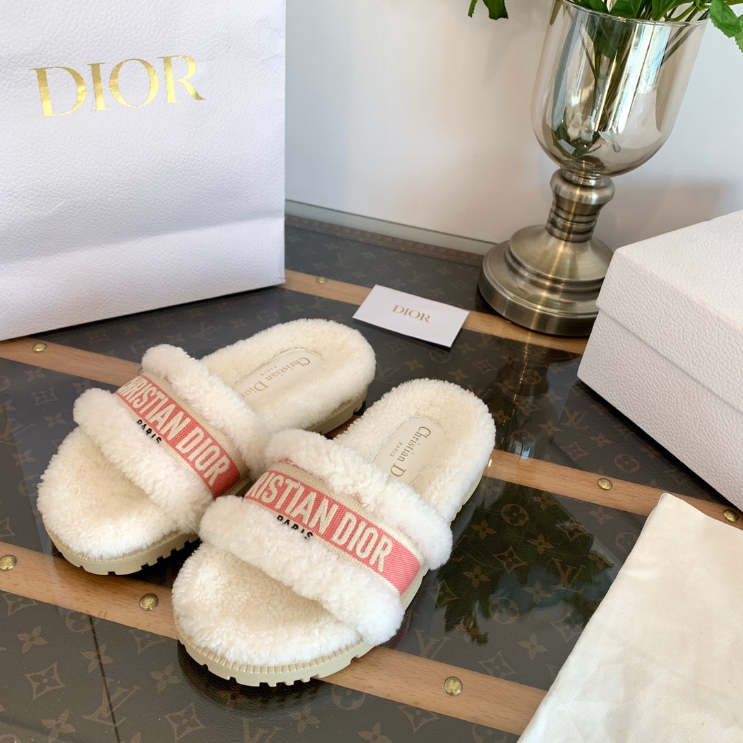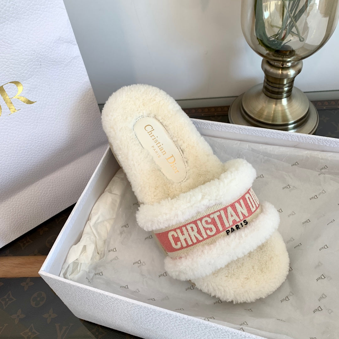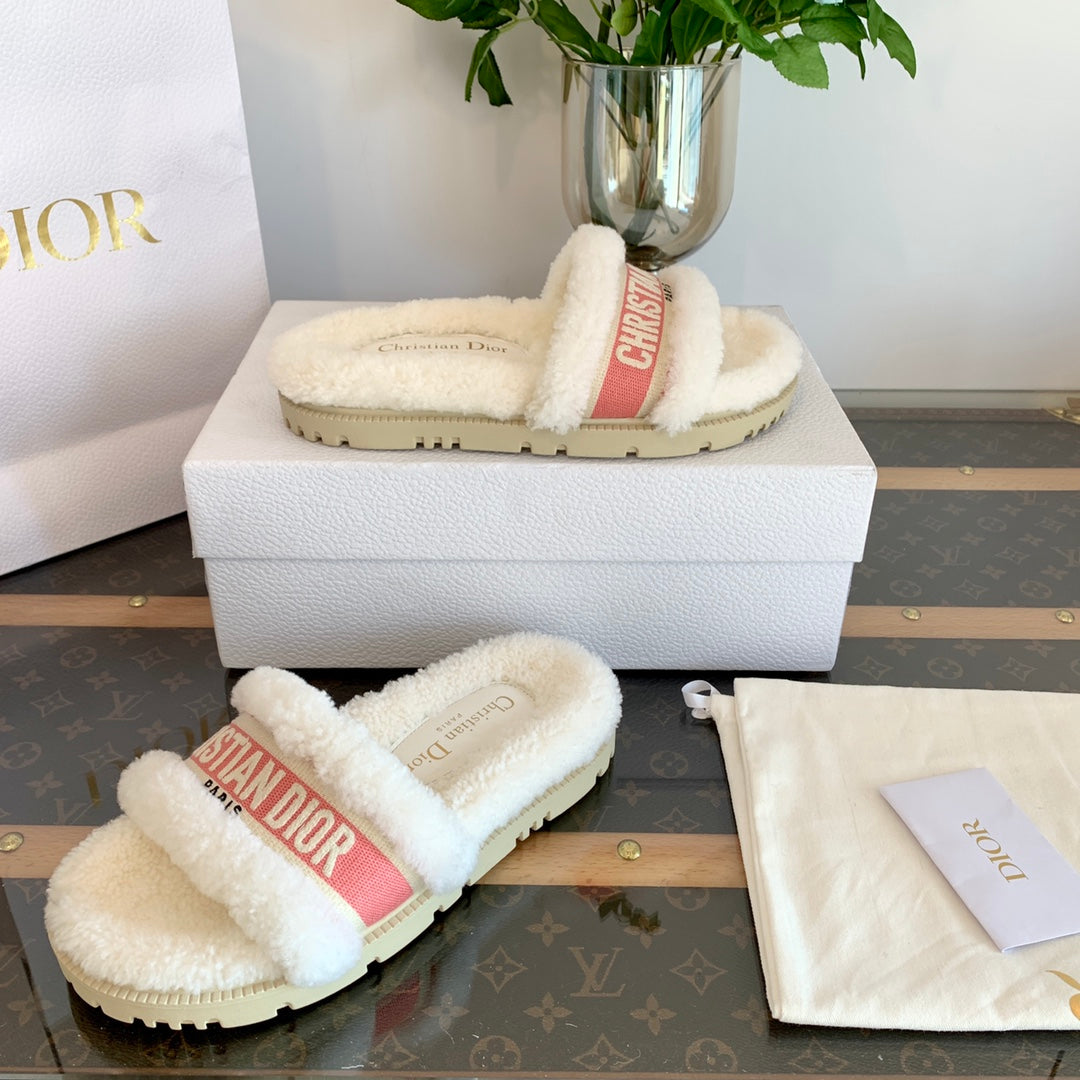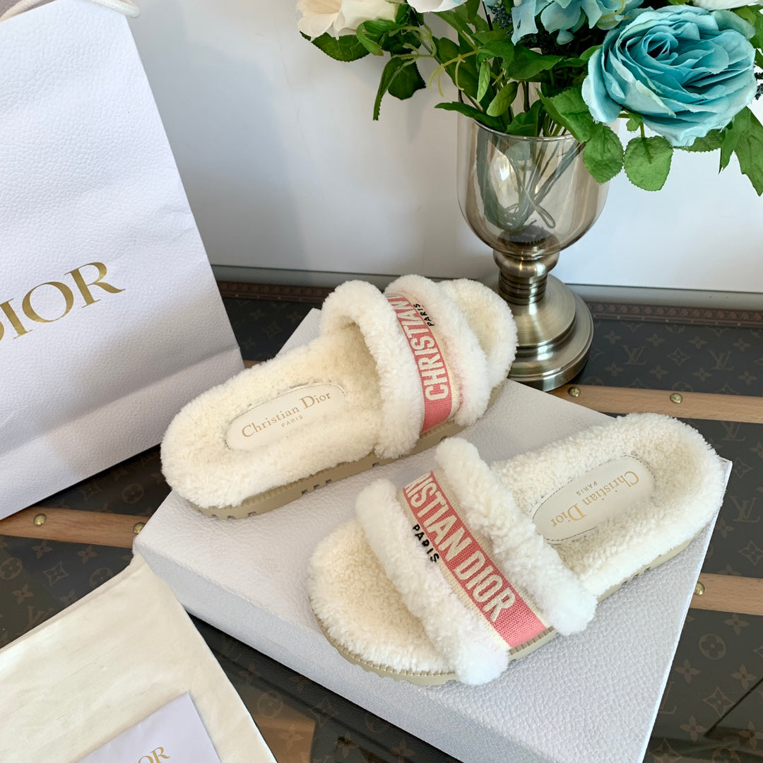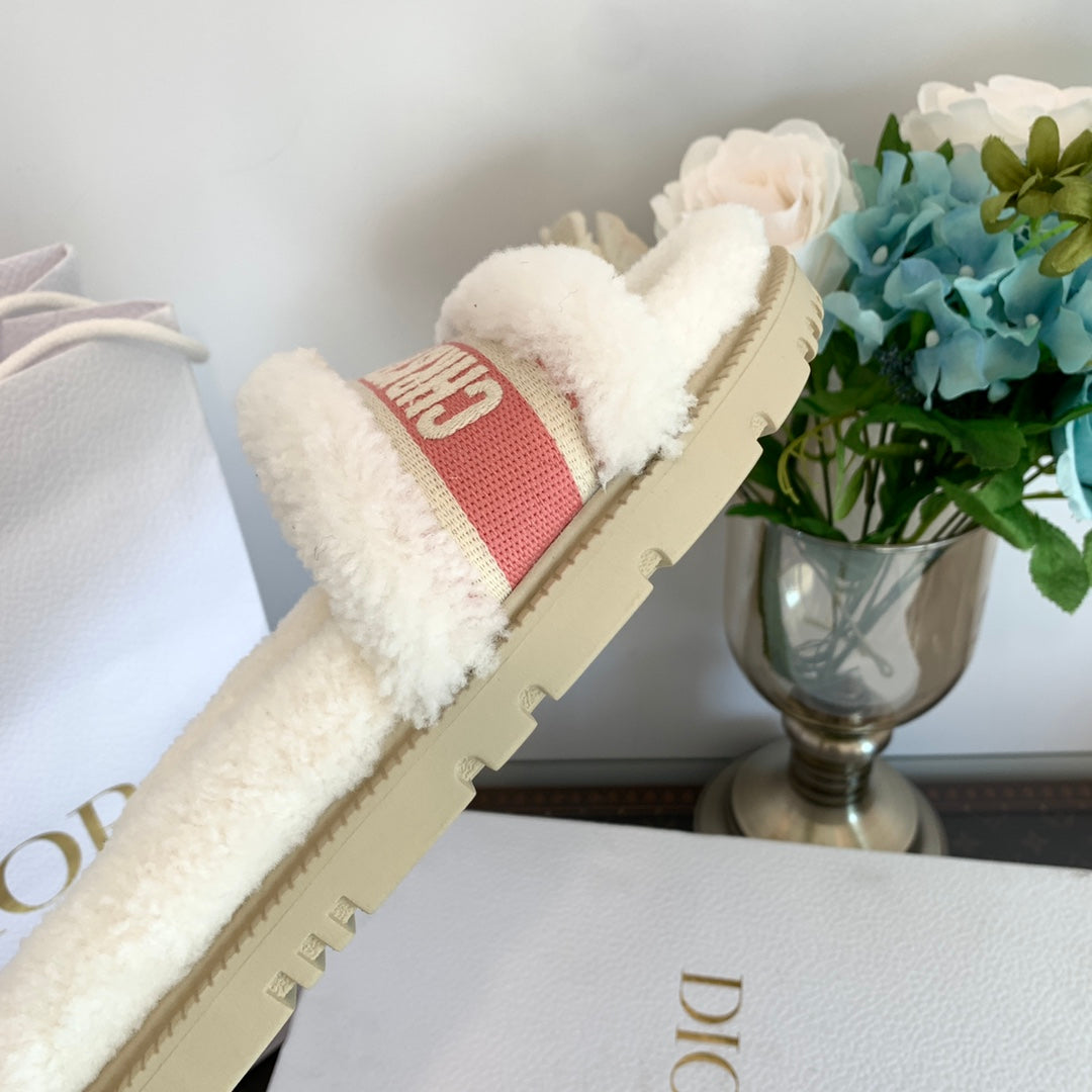 CD Dway Slide Pink White Wool Fleece Lining And Canvas Fabric