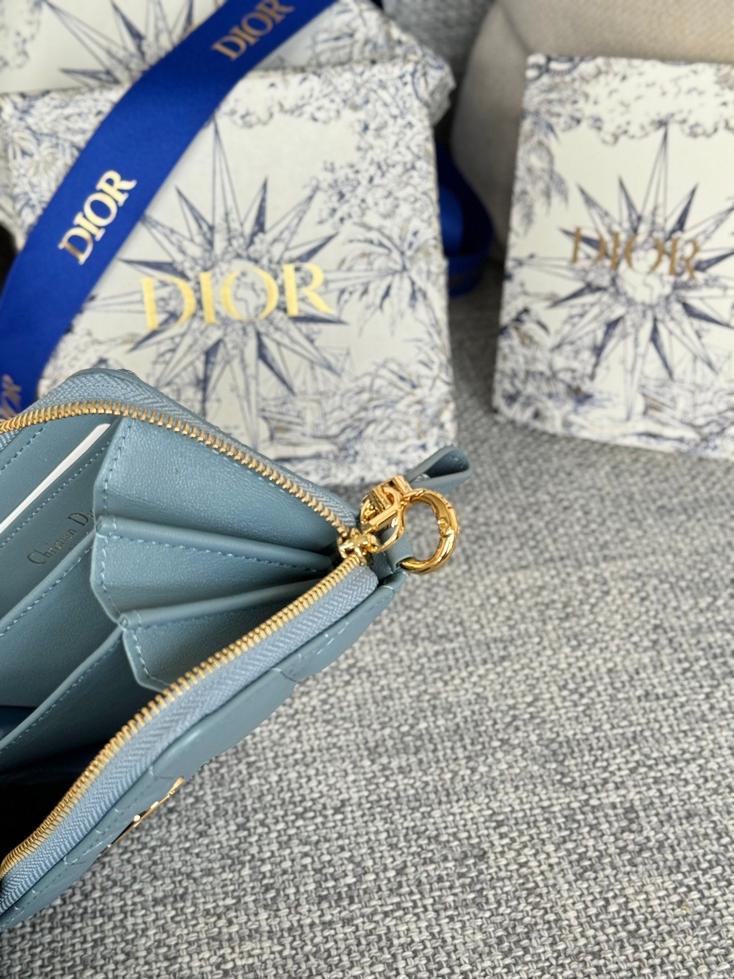 CD Logo Caro 11cm Compact Wallet Cloud Blue Calfskin