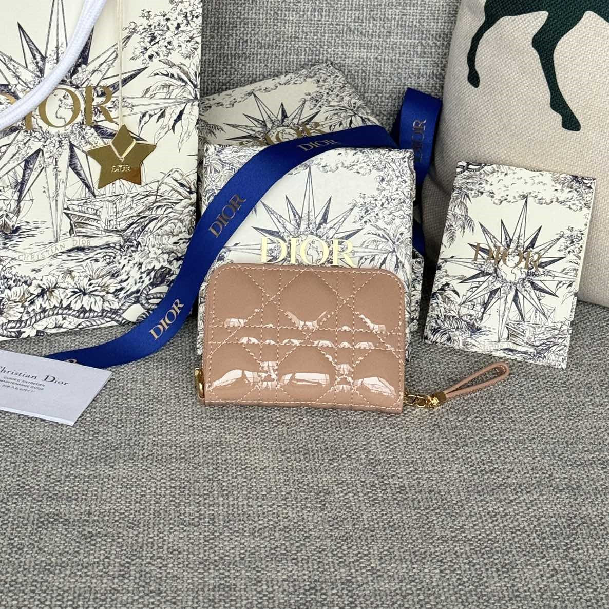 CD Logo Caro 11cm Compact Wallet Shiny Dark Beige Calfskin