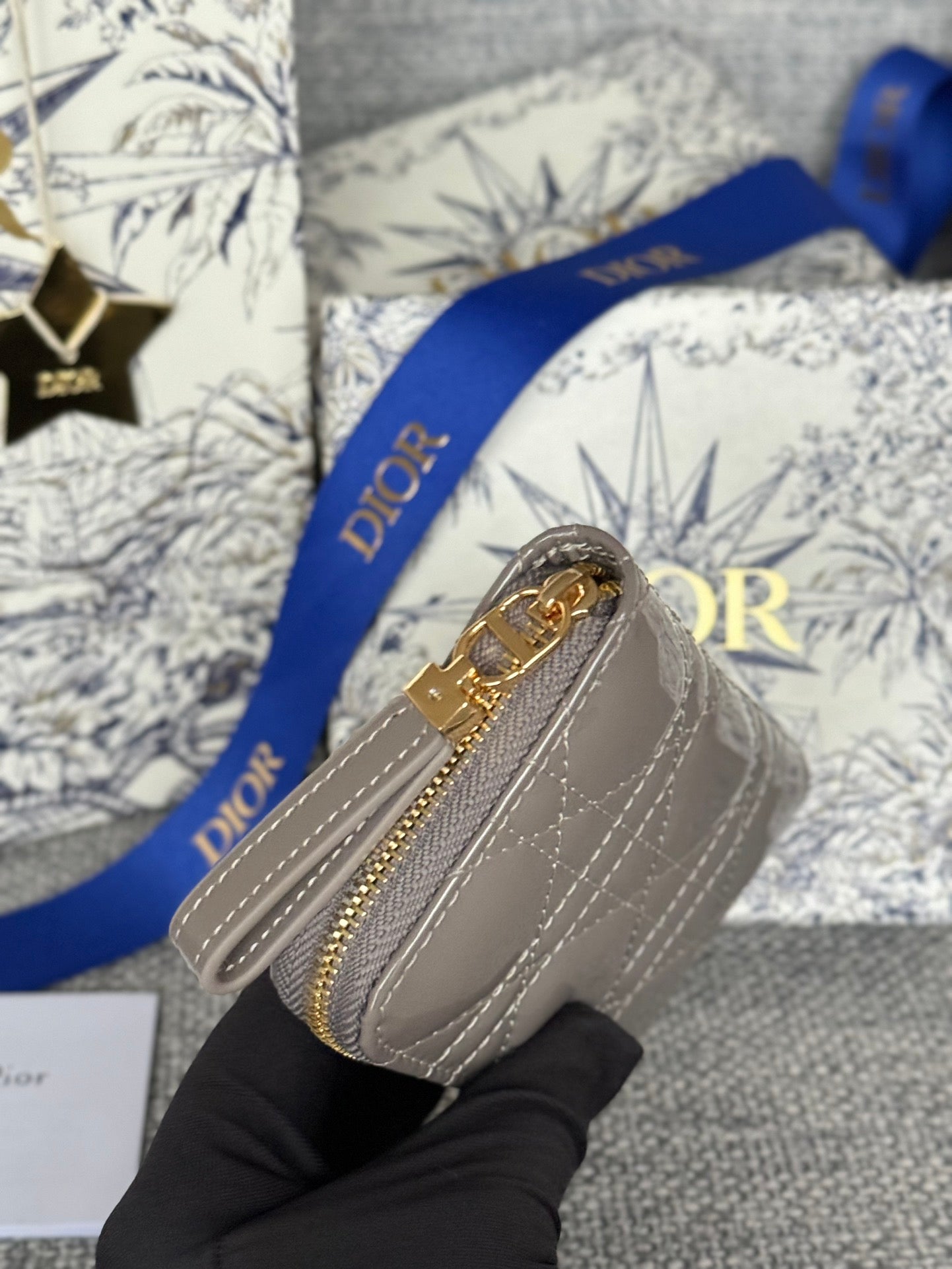 CD Logo Caro 11cm Compact Wallet Shiny Grey Calfskin