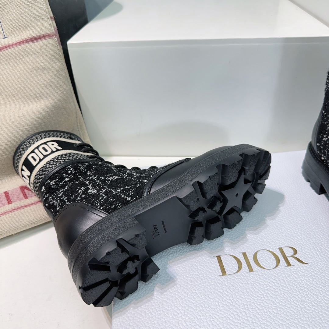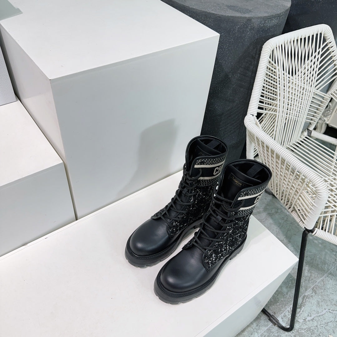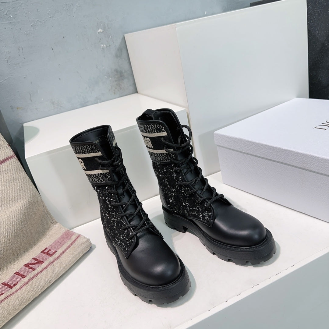 CD Major Ankle Boots Black White Calfskin And Fabric Canvas