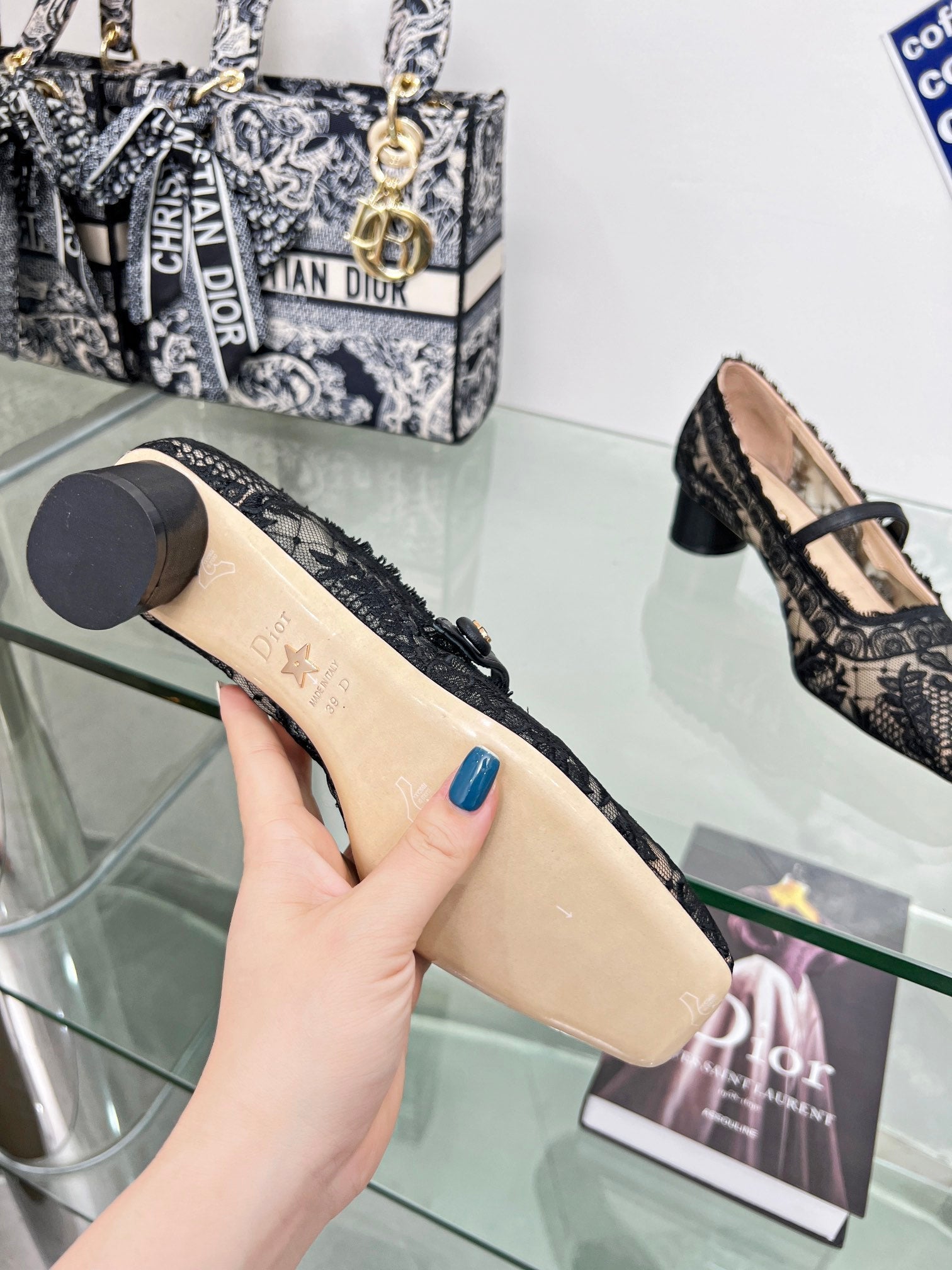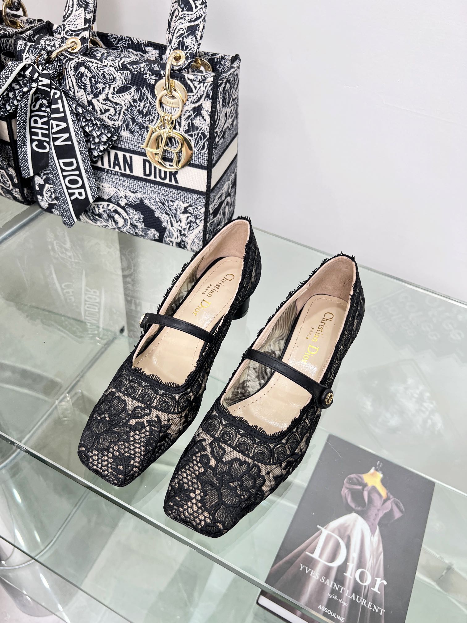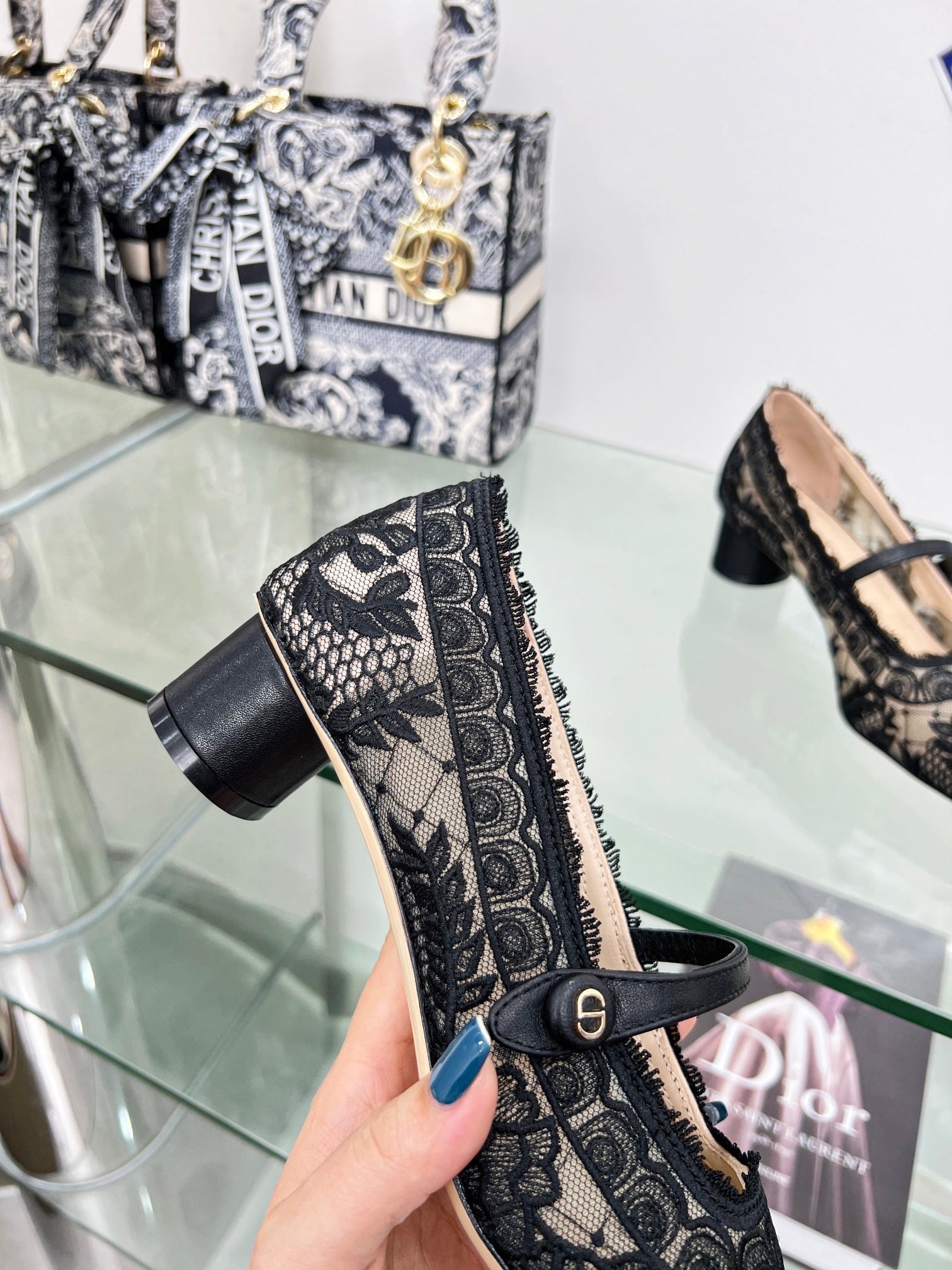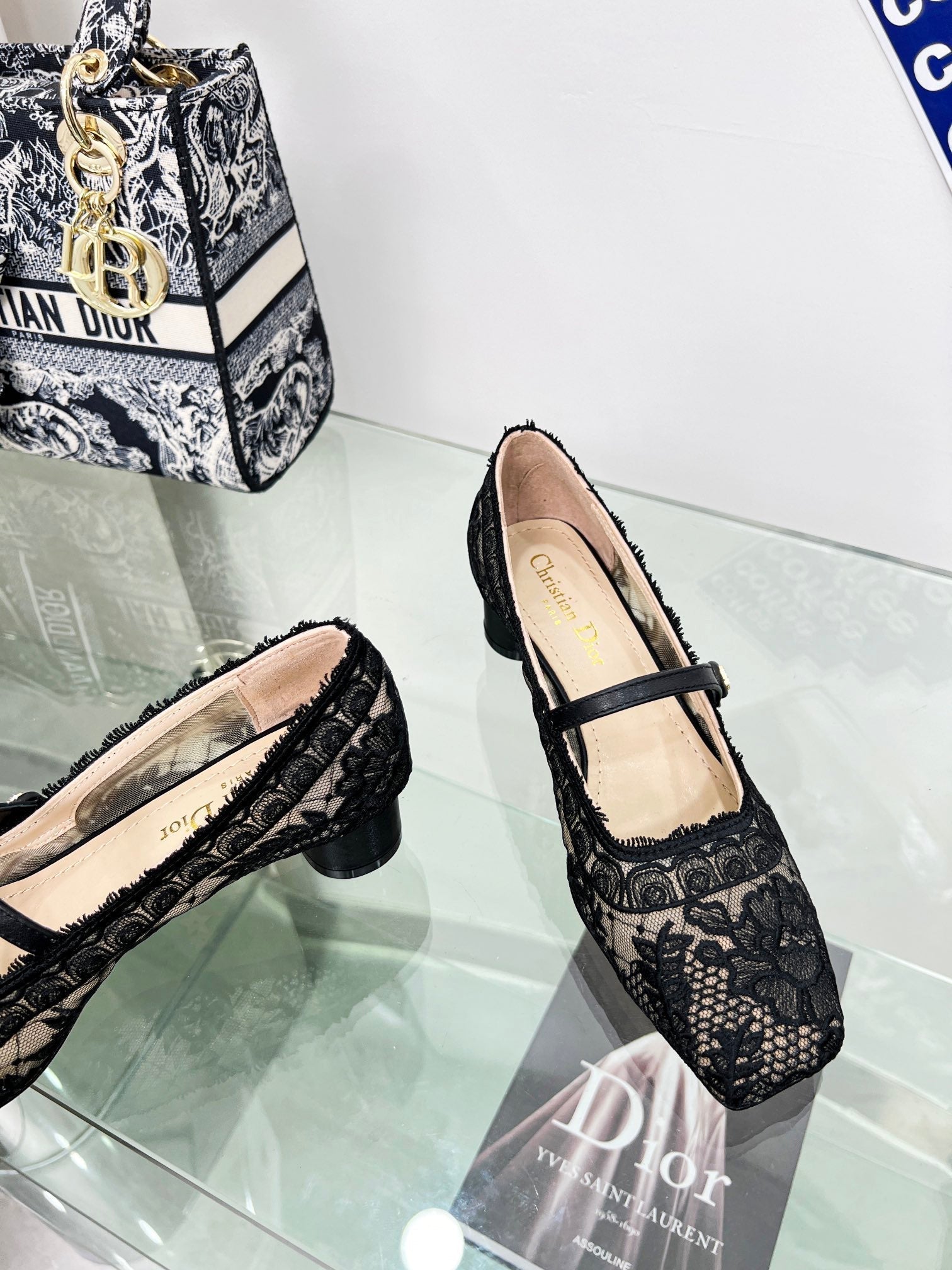 cd mary jane transparent mesh embroidered black flower motif