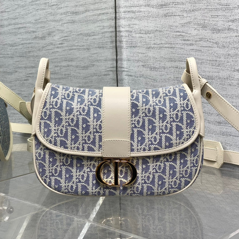 CD Montaigne classic monogram 25 blue white canvas jacquard