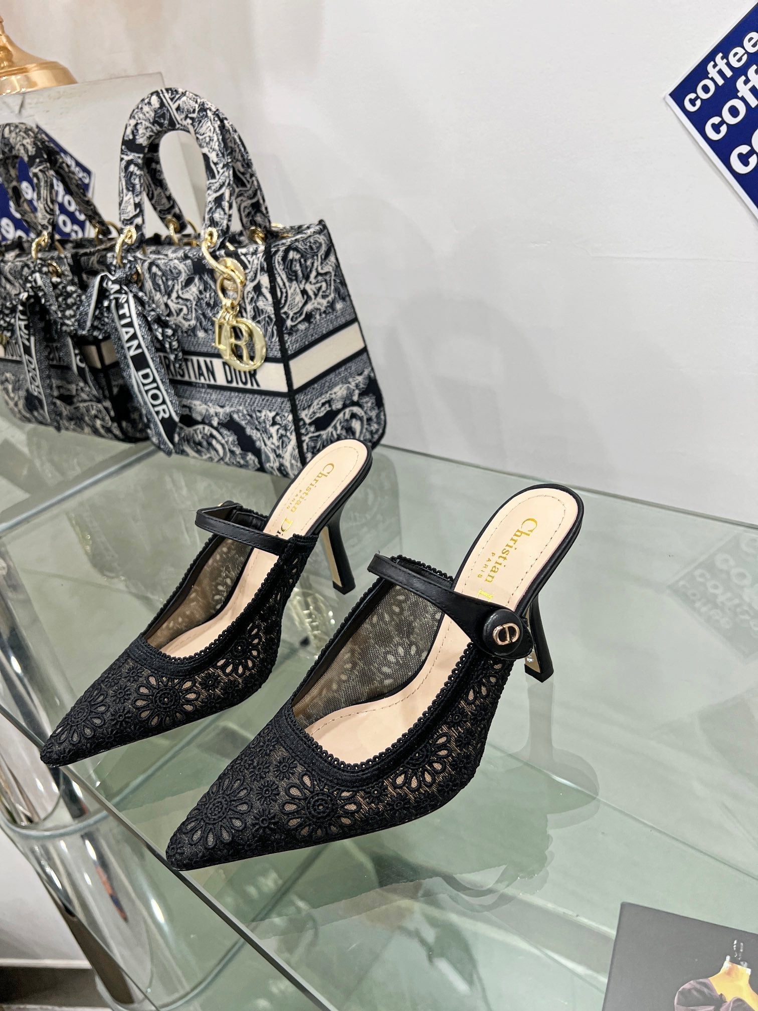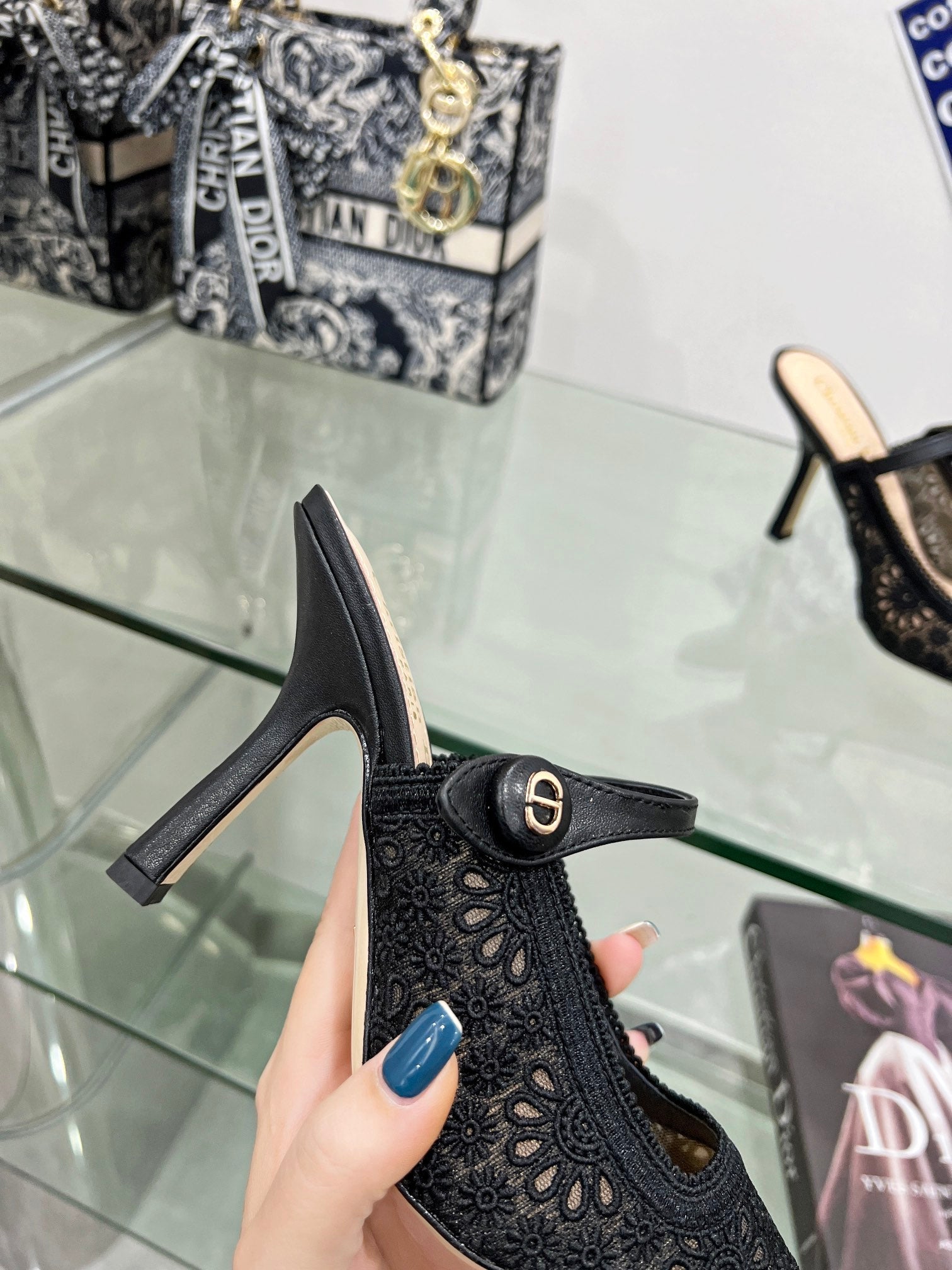 - Material: Calfskin, transparent mesh embroidered