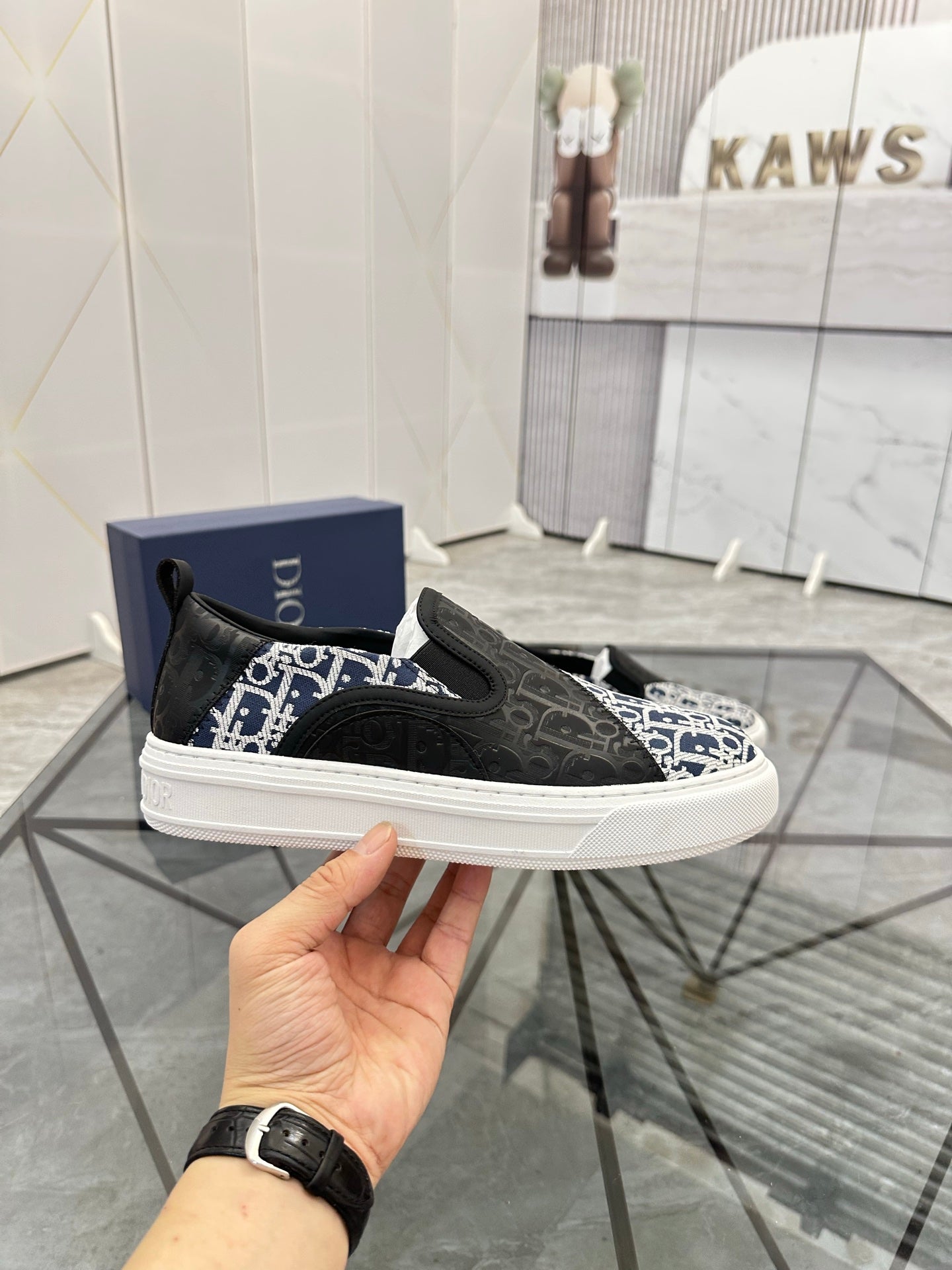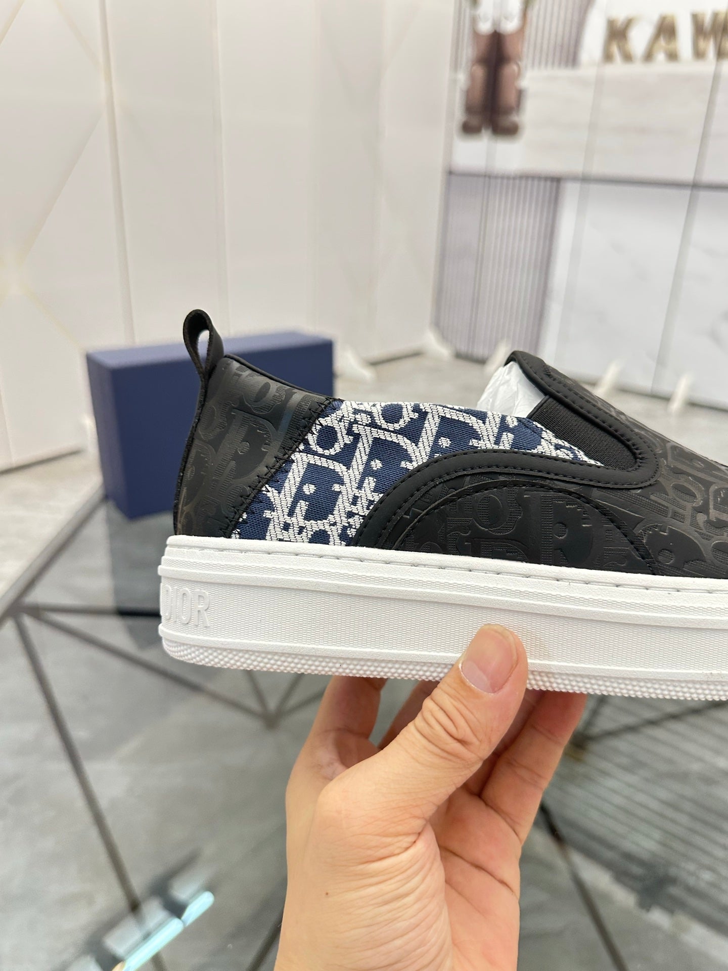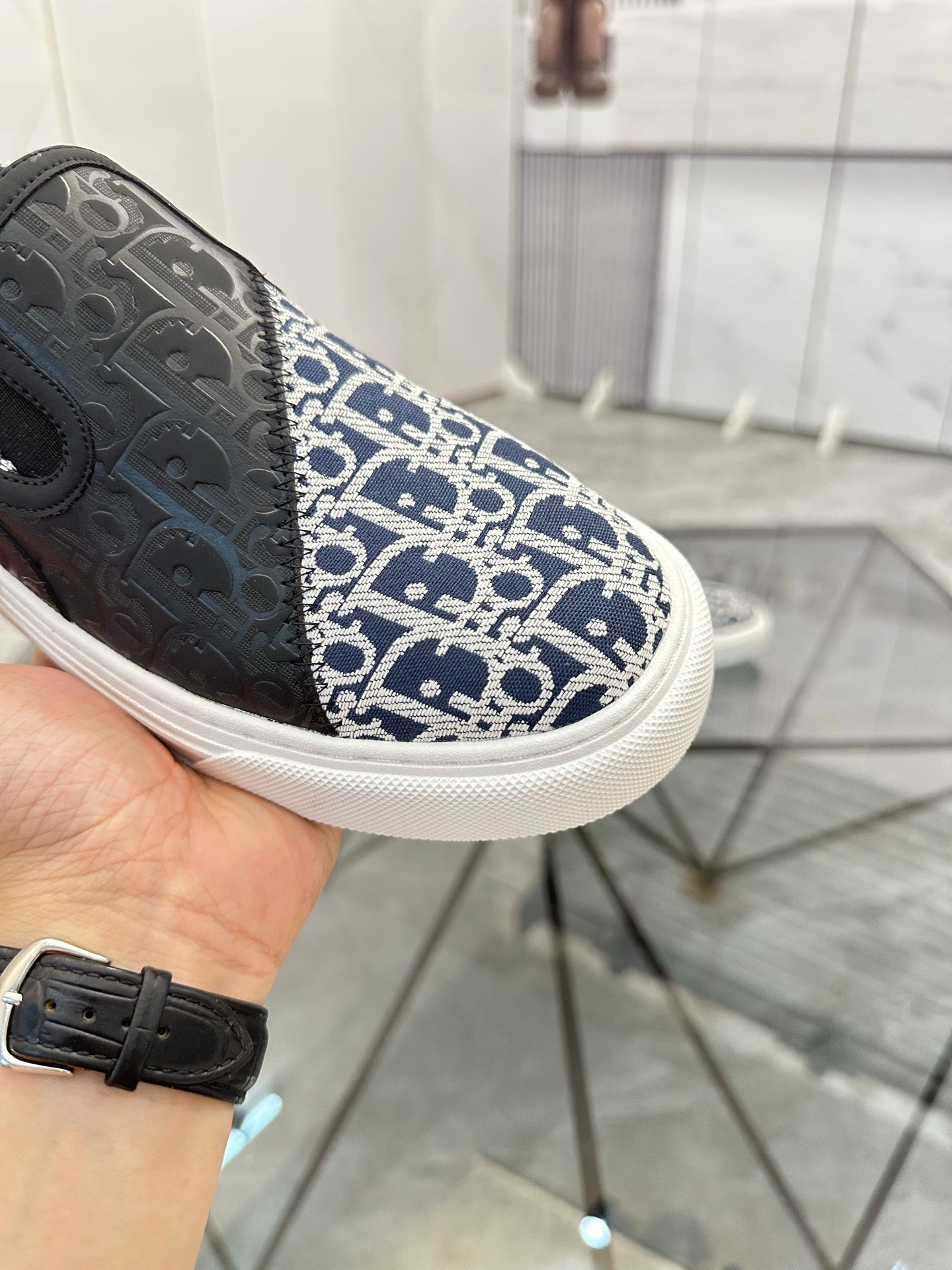 CD Slip on loafer Black Blue Cowhide Fabric 647996