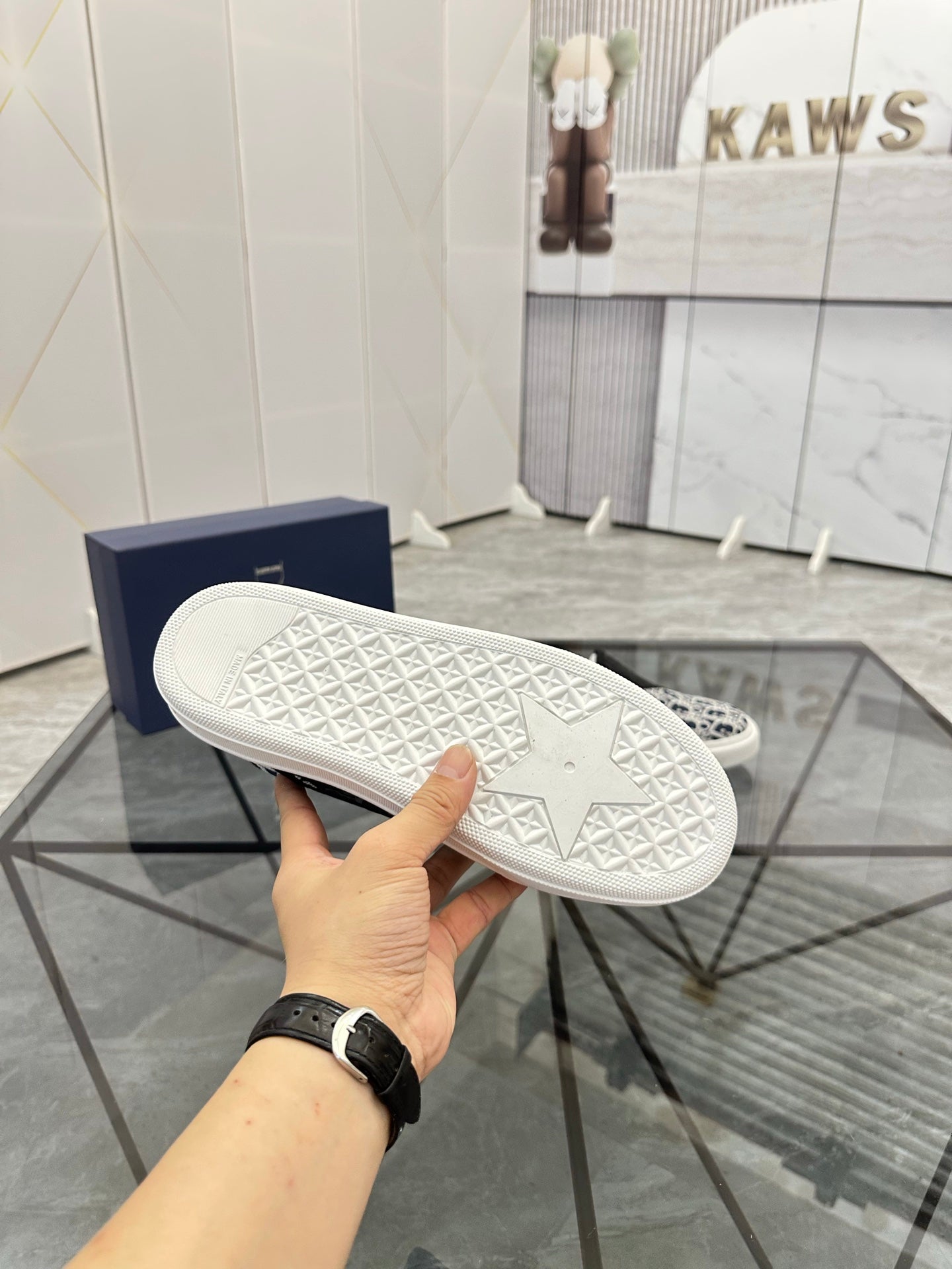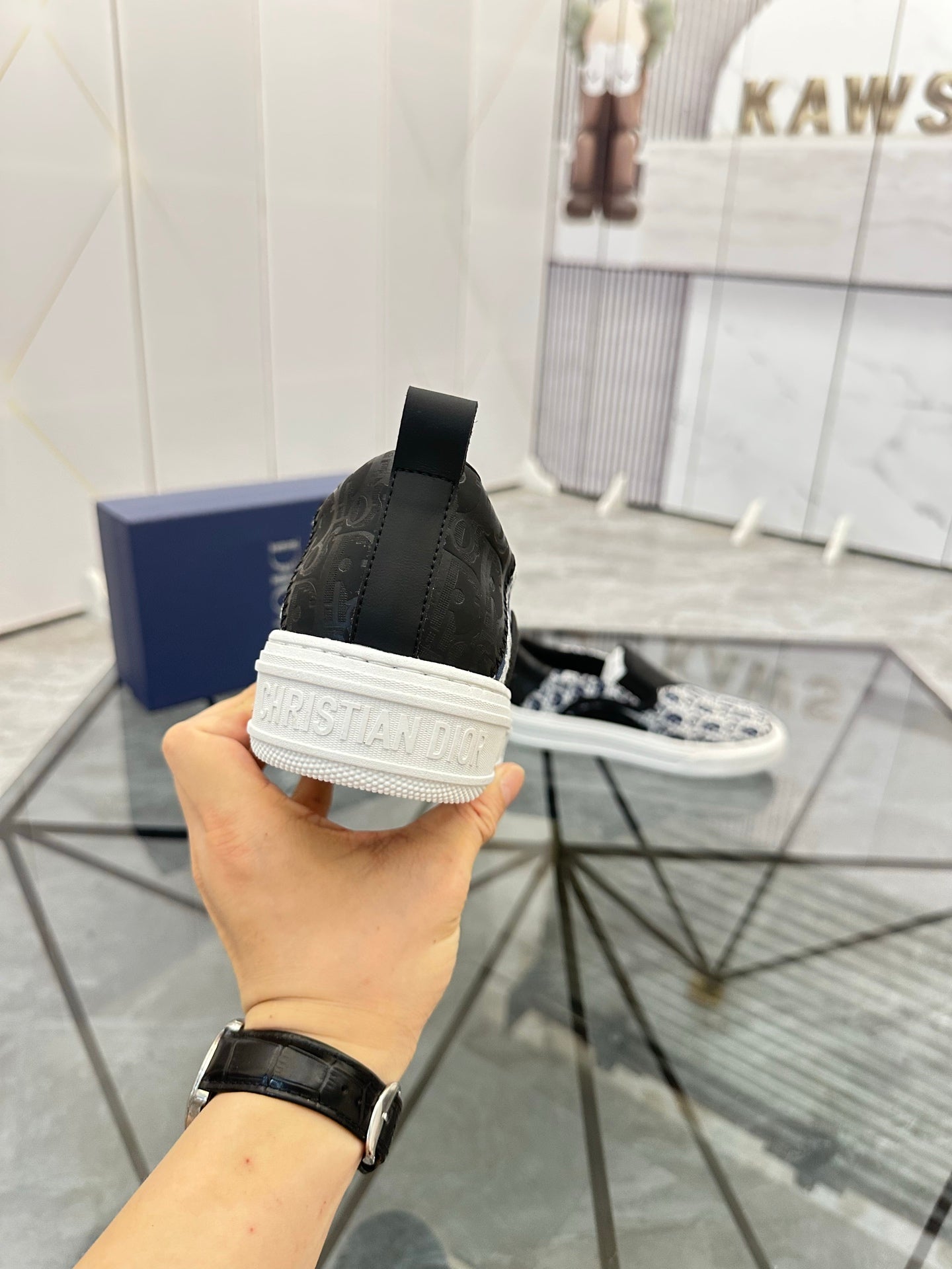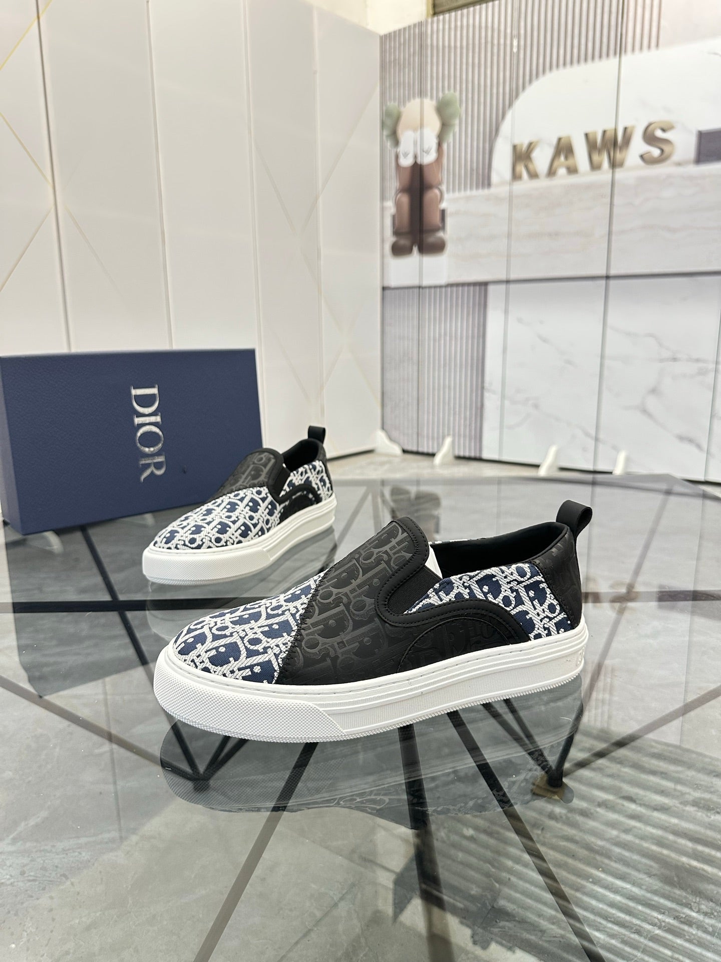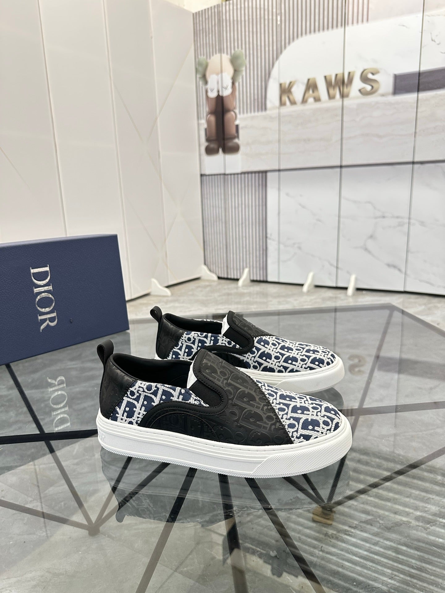 CD Slip on loafer Black Blue Cowhide Fabric 647996