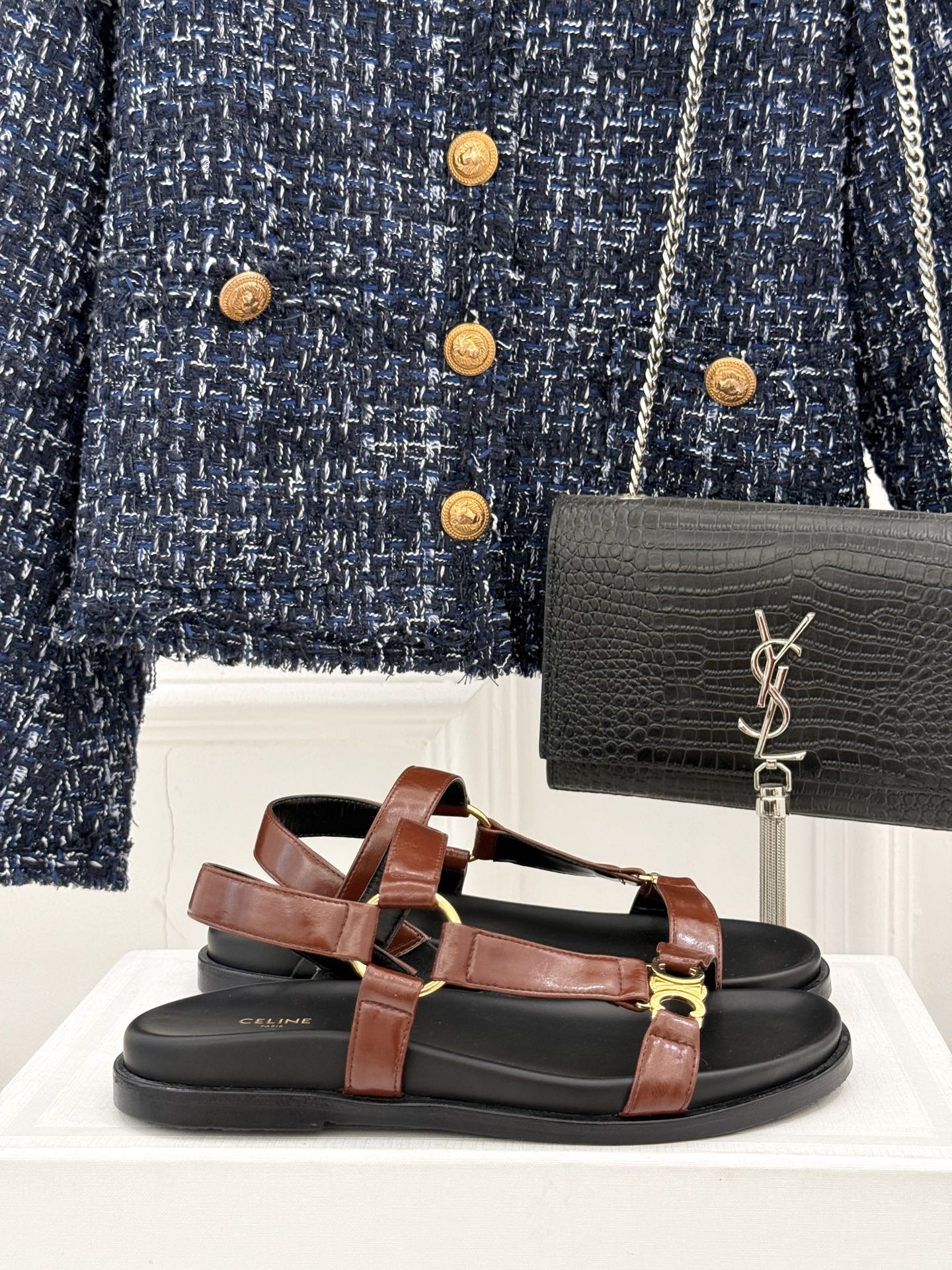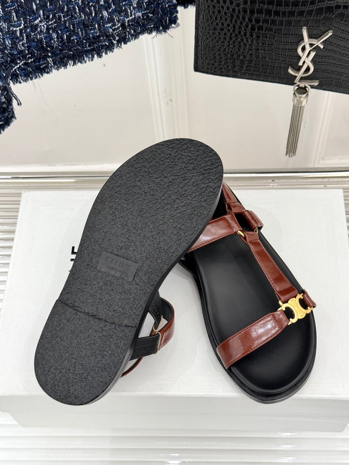 CELINE Maud Sandal Red Brown Leather 285903